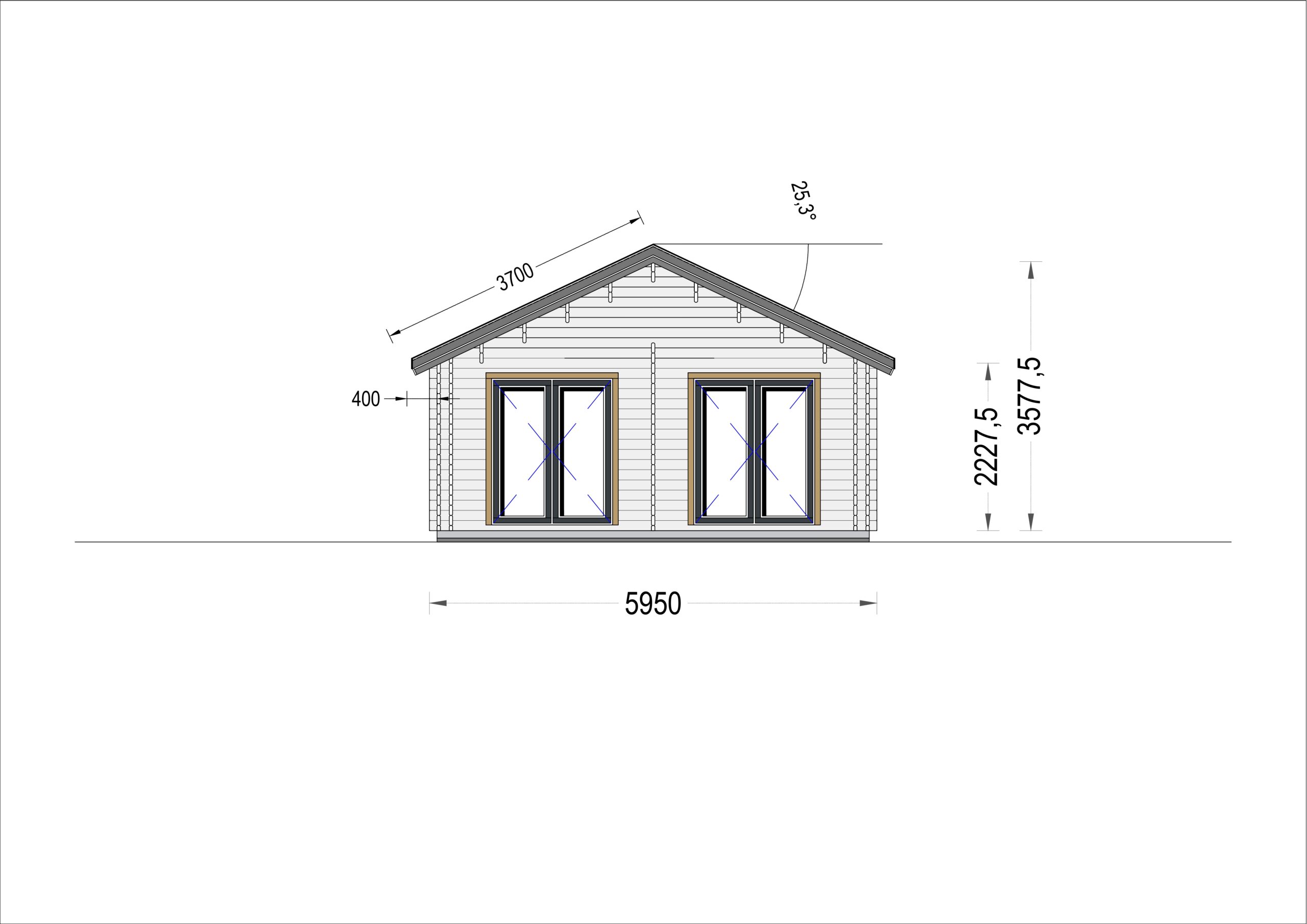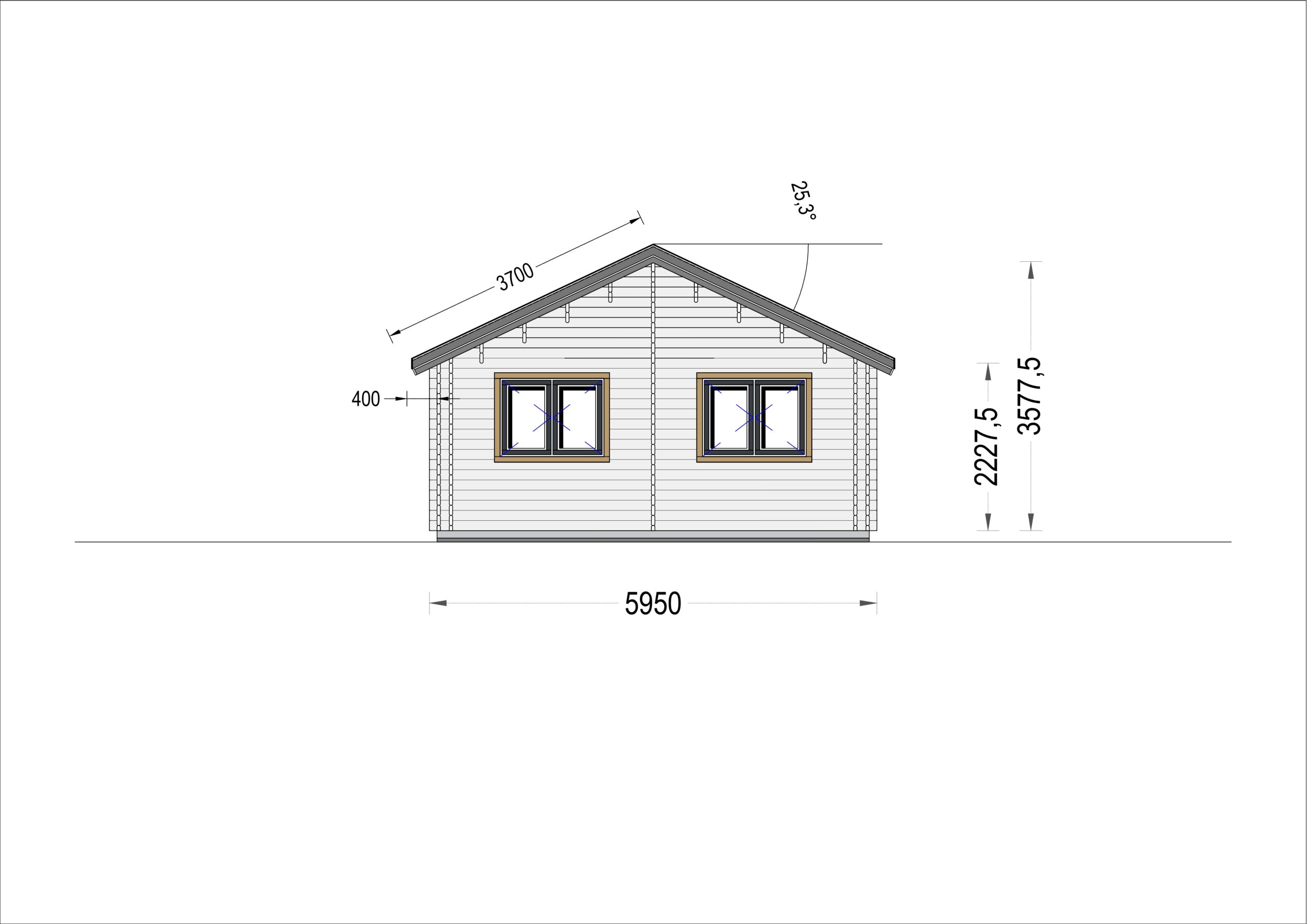 Das Blockbohlenhaus ANGELA präsentiert ein traditionelles Sattel-Dach und stilvolle Dachüberstände, die dem Haus eine klassische und ästhetisch reizvolle Optik verleihen. Diese Gestaltungselemente betonen die Harmonie des Designs.