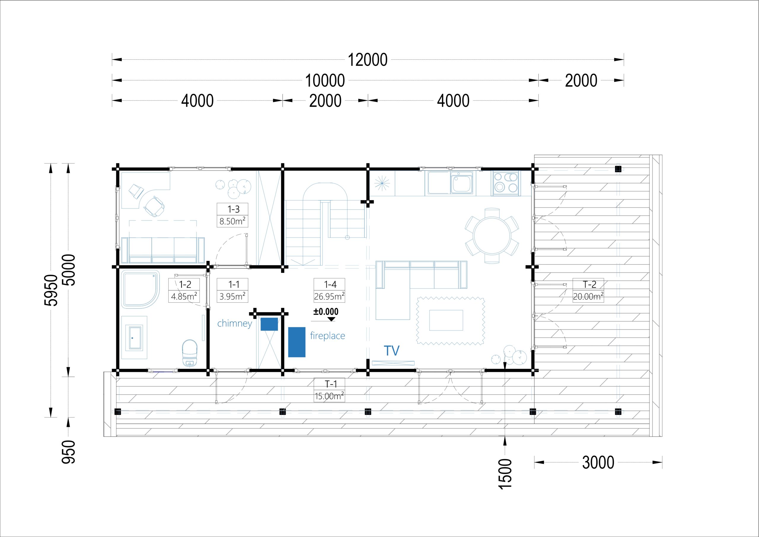 - Großzügige überdachte Terrassen: Eine großzügige überdachte Terrasse an der Vorder- und Rückseite des Gebäudes schafft den perfekten Ort, um entspannte Momente im Freien zu genießen. Hier können Sie die Natur erleben und Zeit mit Ihrer Familie verbringen.