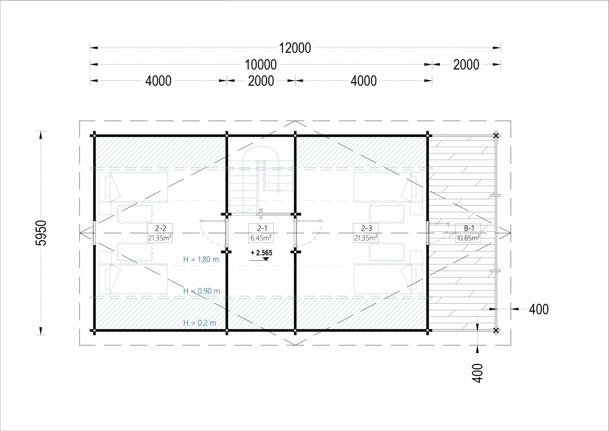 Blockbohlenhaus ERWIN (44 mm) 28 m²