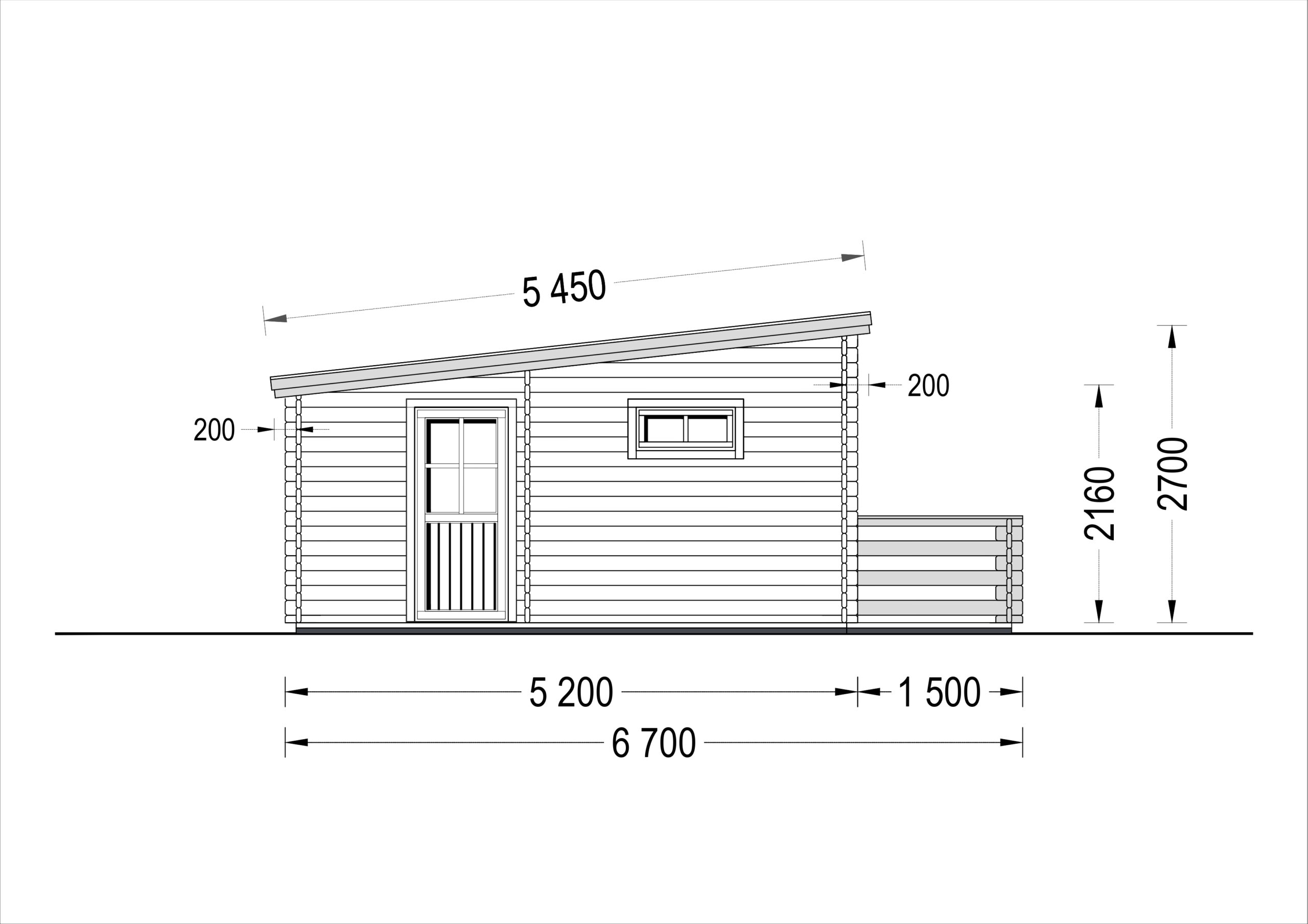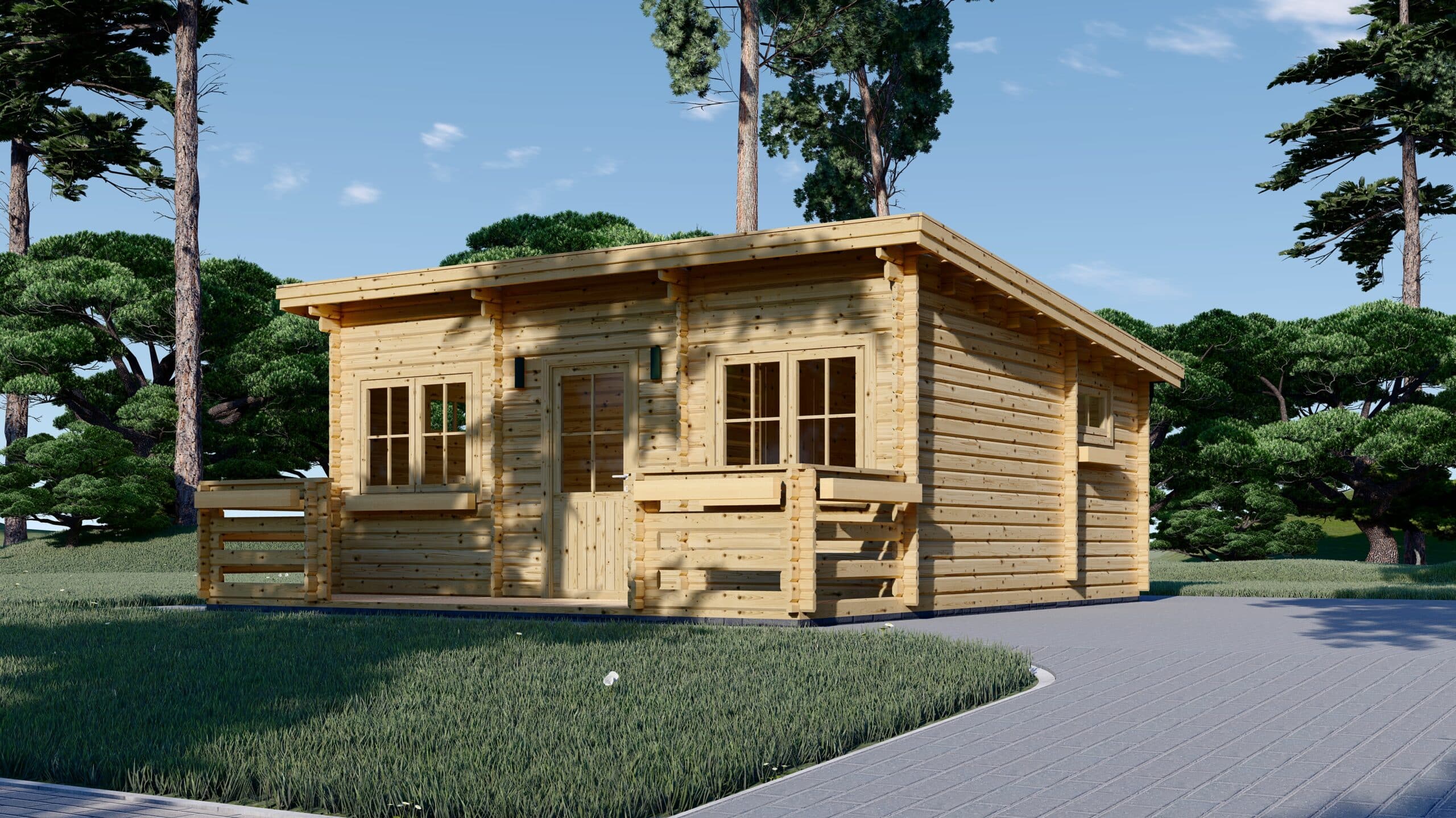 Blockbohlenhaus ARMIN (44 mm) 31 m² mit Pultdach