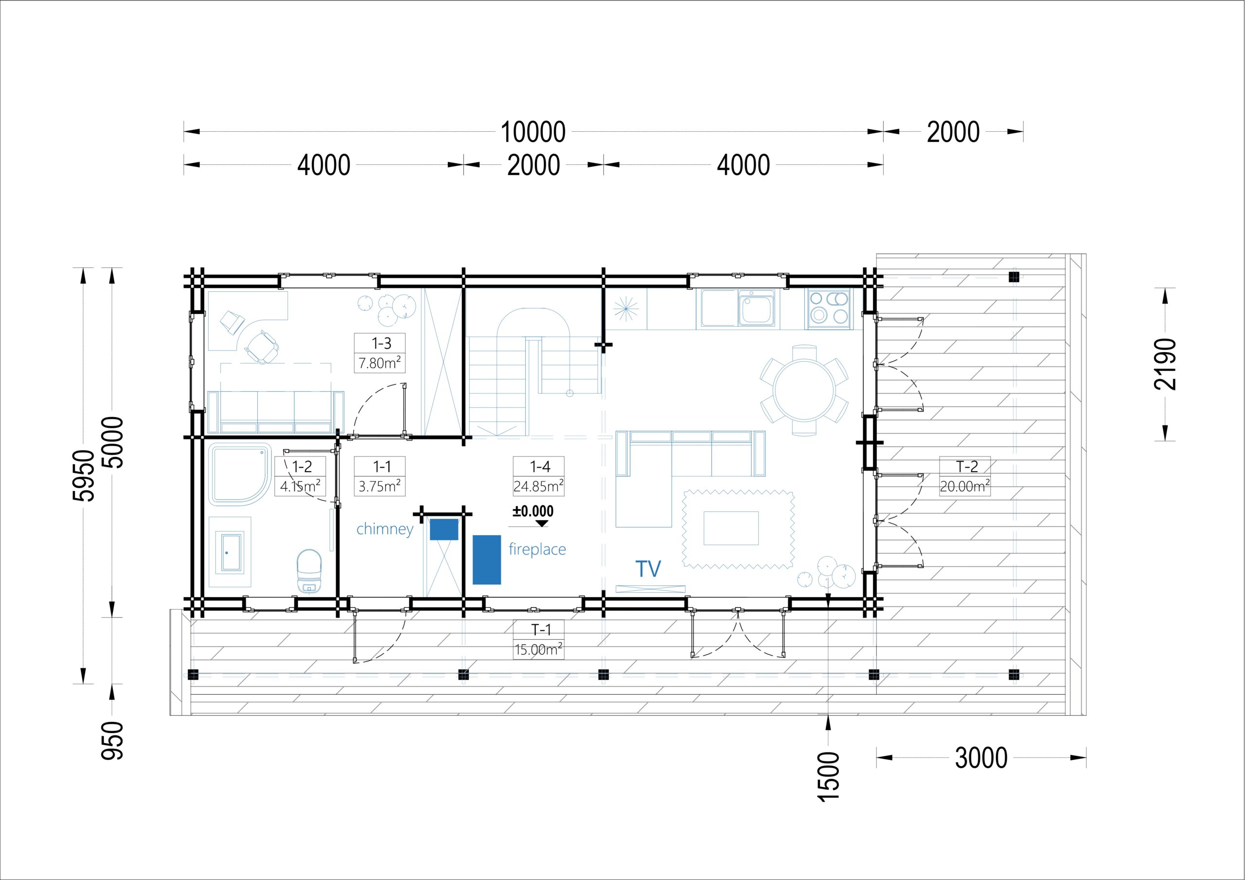 Blockbohlenhaus FLORENZ (66mm), 100m² + 20m² Terrasse