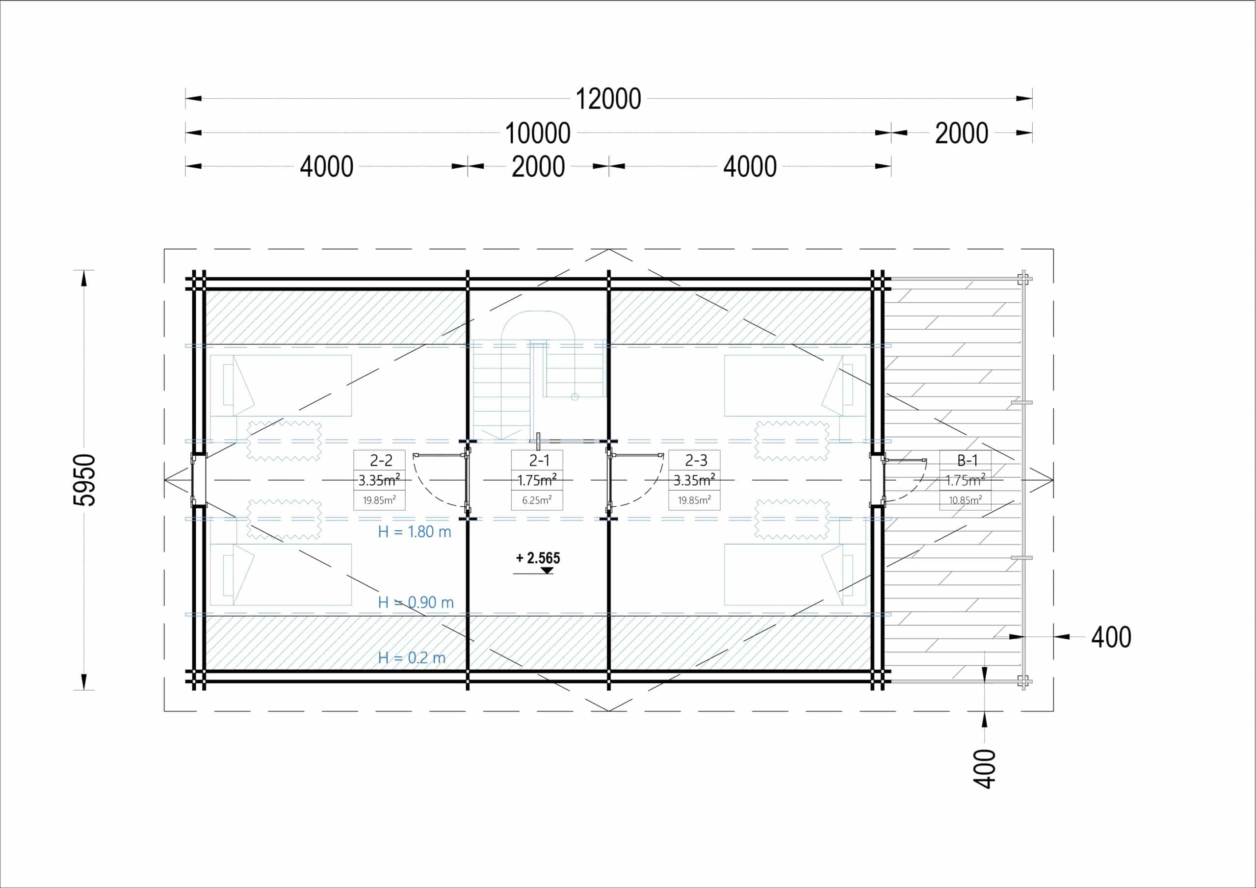 Erhalten Sie ein Dach, das Beständigkeit verspricht! Unsere verstärkte Dachkonstruktion setzt auf robuste Giebel und Dachsparren (45 mm x 135 mm oder 45 mm x 270 mm), um eine dauerhafte Stabilität zu gewährleisten und Ihr Dach vor möglichen Verformungen zu schützen.