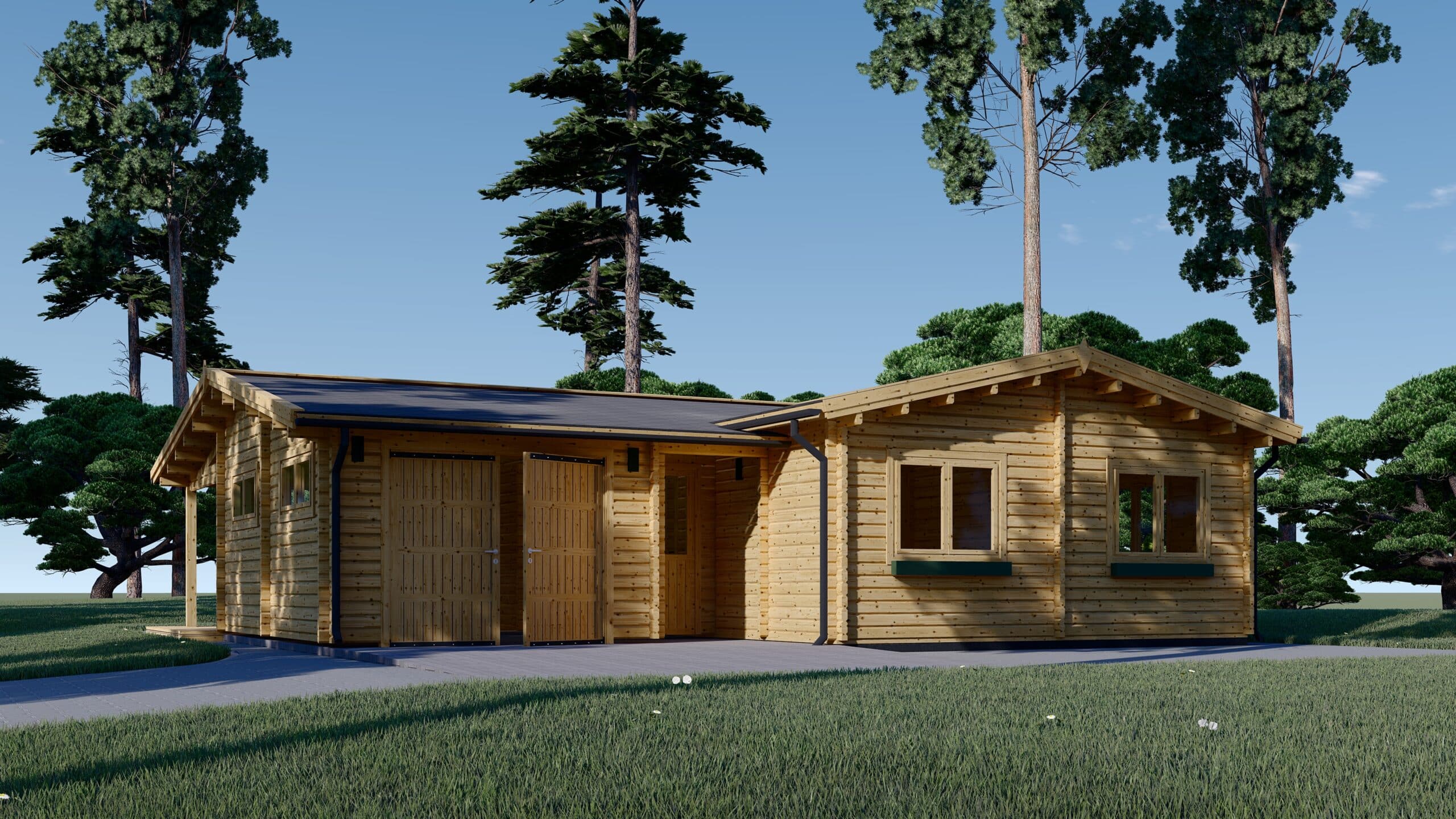 Premium Blockbohlenhaus AUGSBURG (66 mm) 48 m²