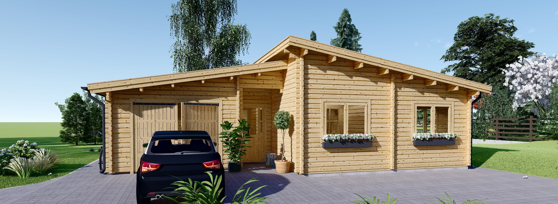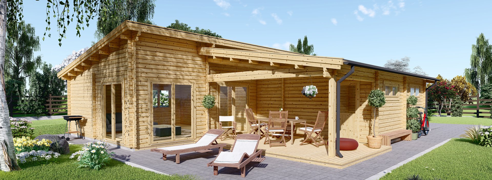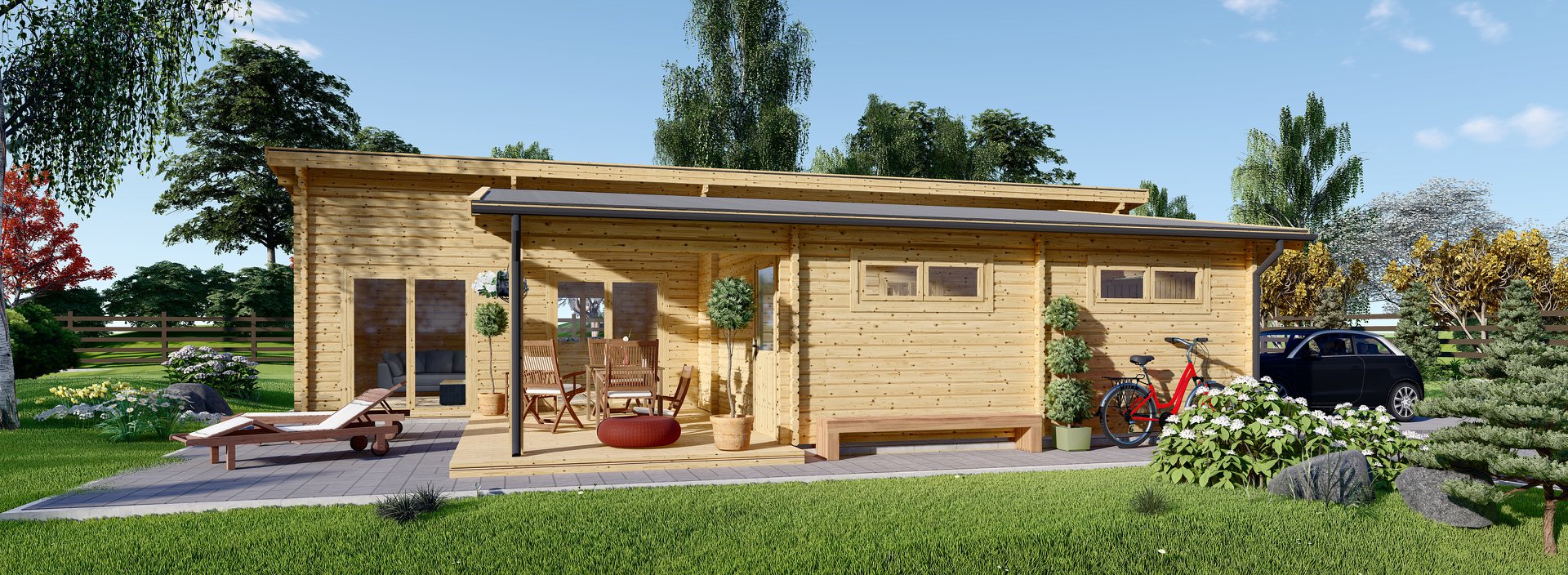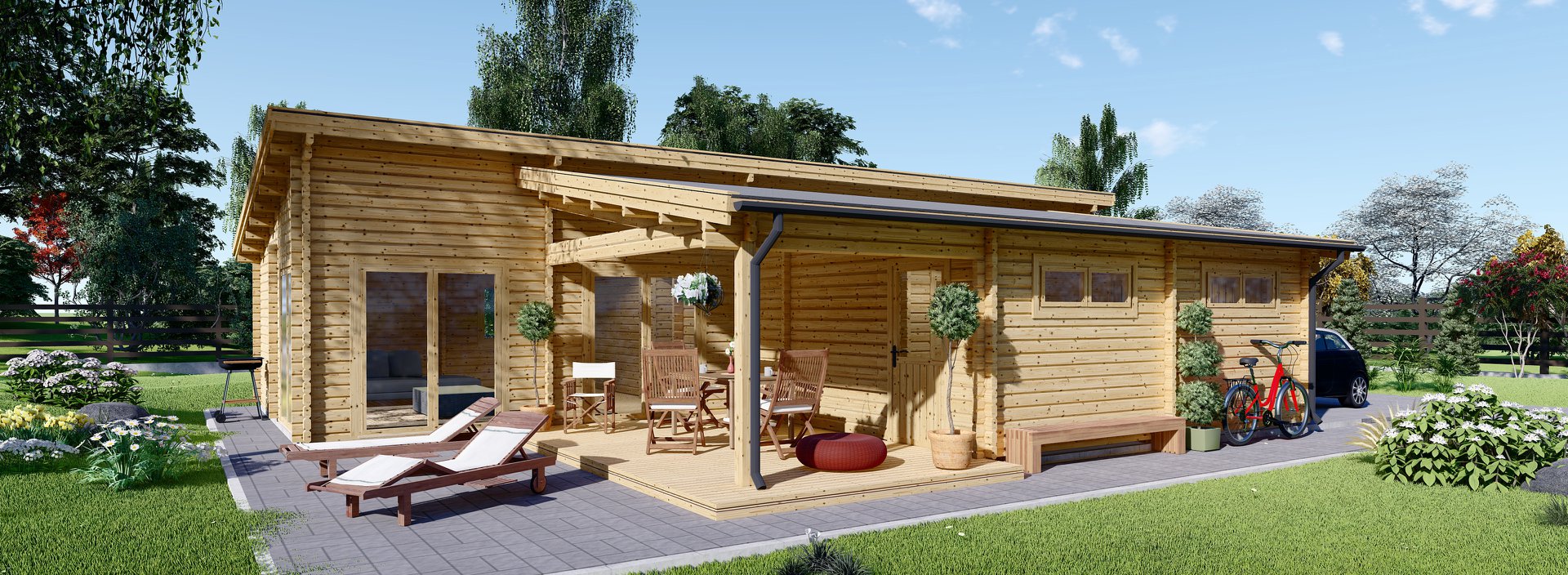 Blockbohlenhaus SEEFELD (66mm) 105m² mit Flachdach