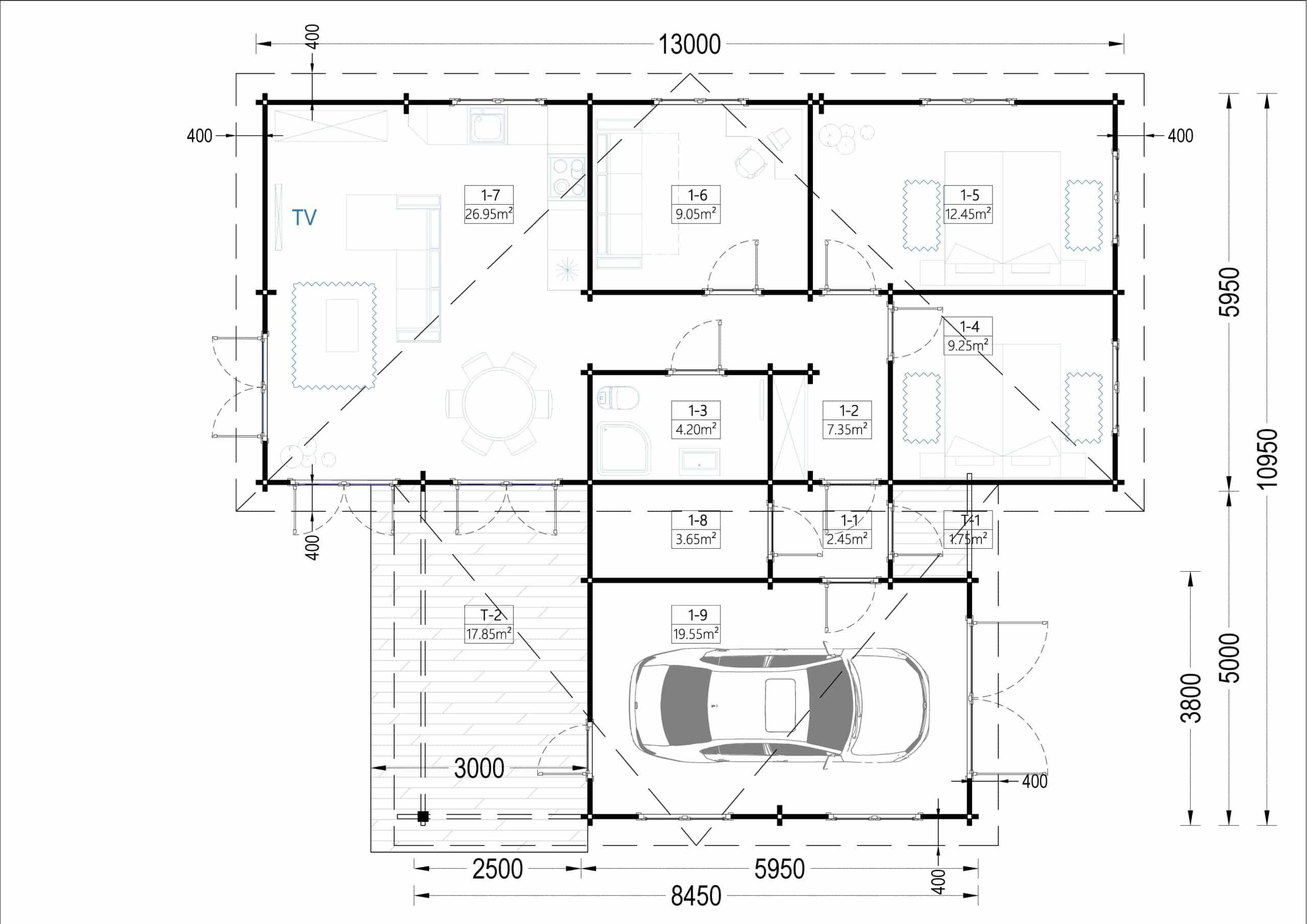 Blockbohlenhaus FELDKIRCH (44 mm), 56 m²
