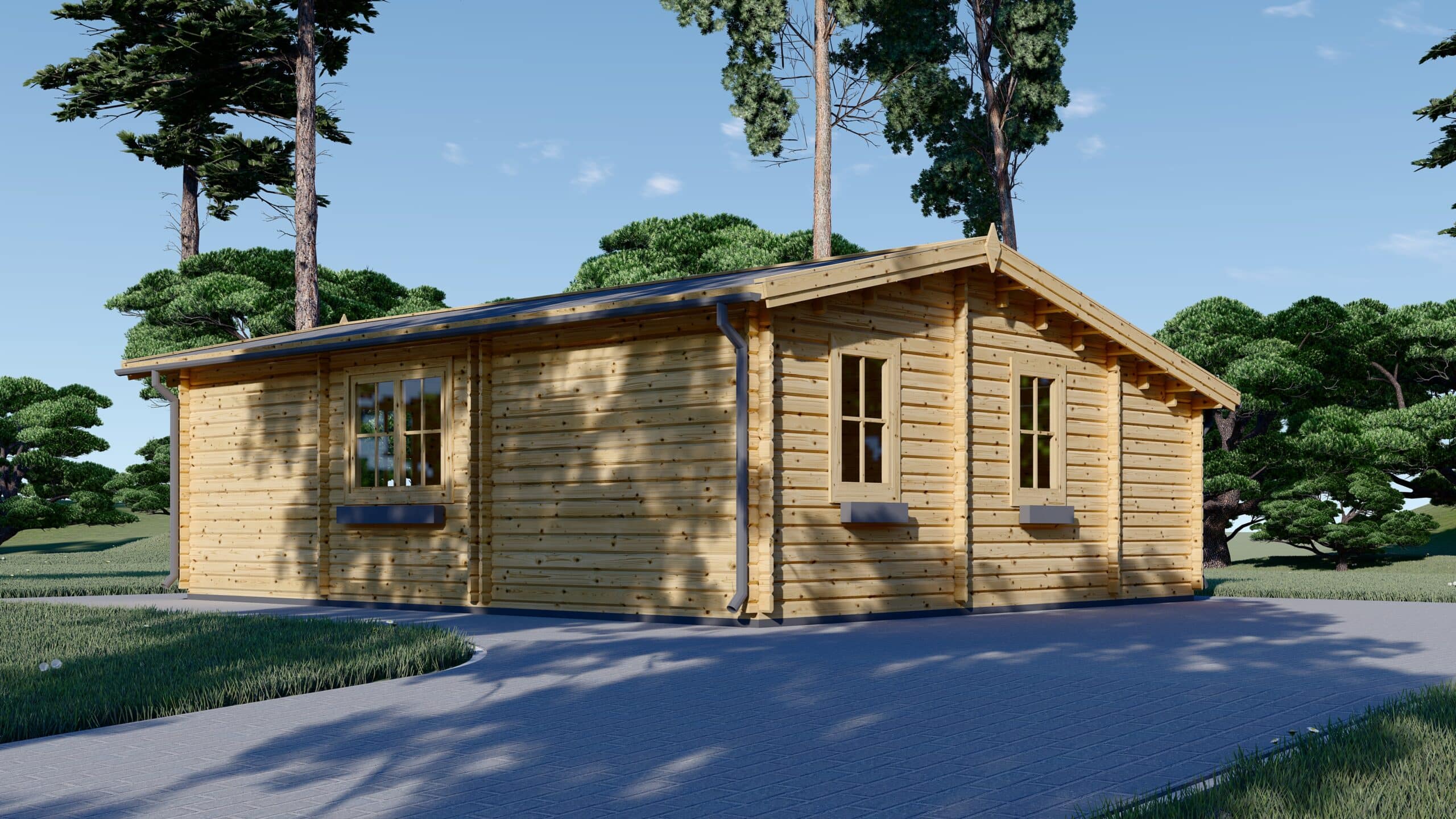 Premium Blockbohlenhaus AUGSBURG (66 mm) 48 m²