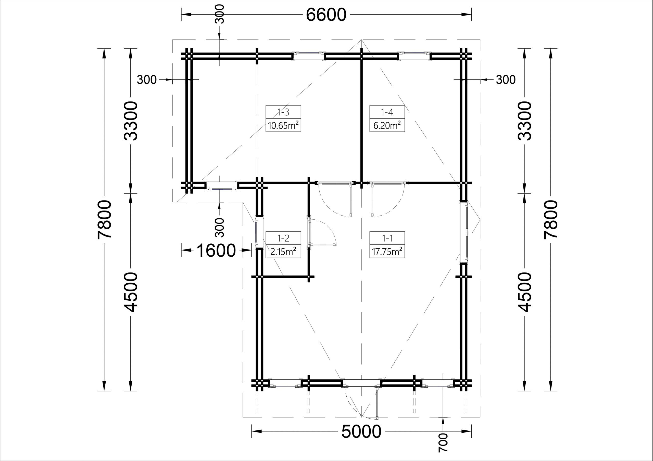 Blockbohlenhaus ERWIN (44 mm) 28 m²