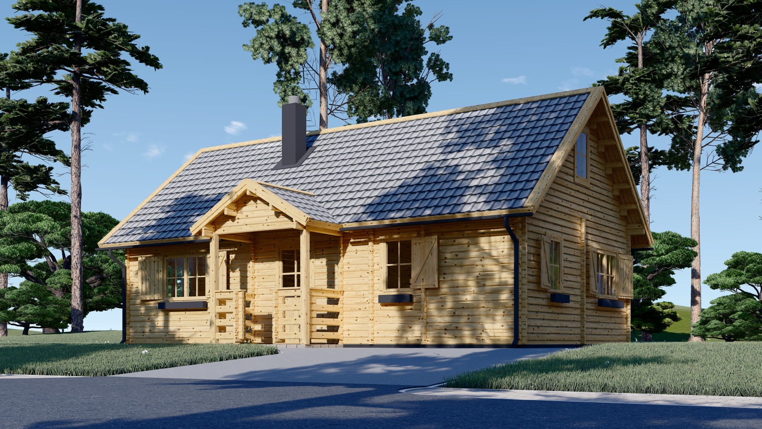 Premium Blockbohlenhaus FRITZ (44mm) 60m²