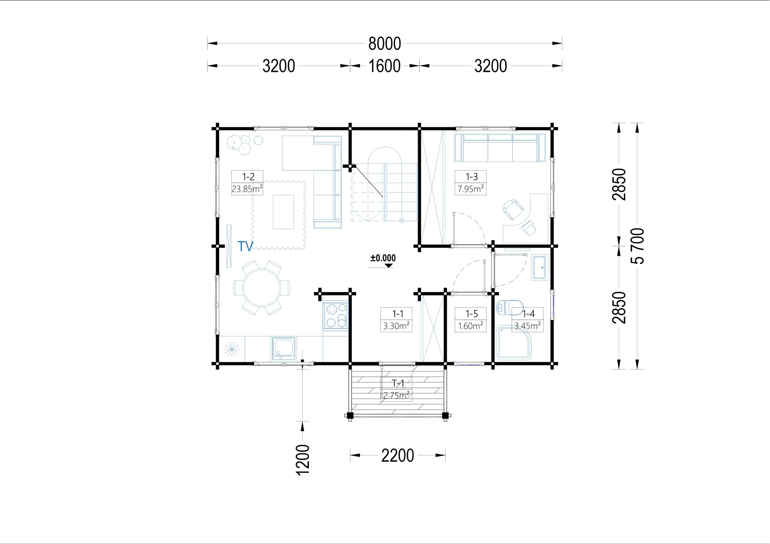 Blockbohlenhaus ERNI(66mm) mit 70 m²