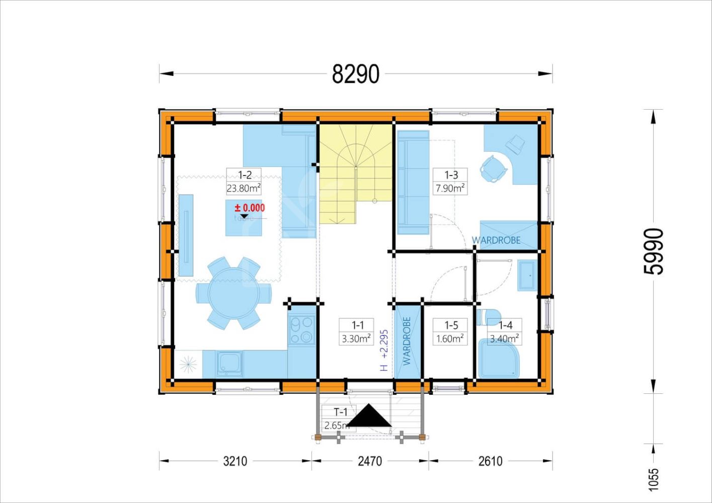 Willkommen im Blockbohlenhaus ERNI – ein kompaktes, isoliertes Holzhaus, das mit seinem durchdachten Design und verstärkter, winterfester Bauweise ein gemütliches und komfortables Zuhause bietet. Mit 91m² Wohnfläche und vielseitig gestaltbaren Räumen ist ERNI die ideale Wahl für Familien, die Wert auf natürliche Lebensweise und einen kleinen ökologischen Fußabdruck legen.