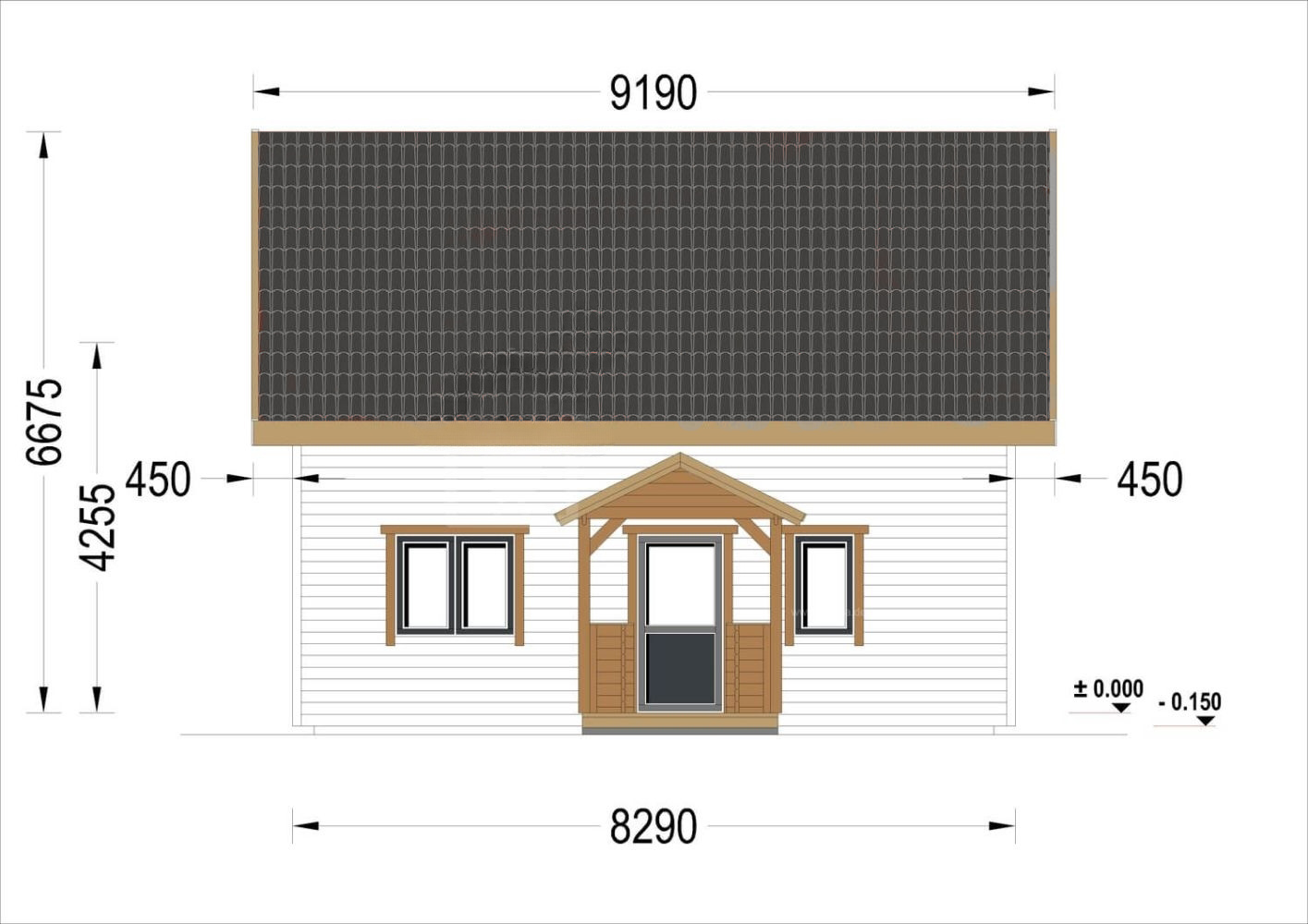 Blockbohlenhaus ERNI (66mm + Holzverschalung, Isoliert) 70 m²