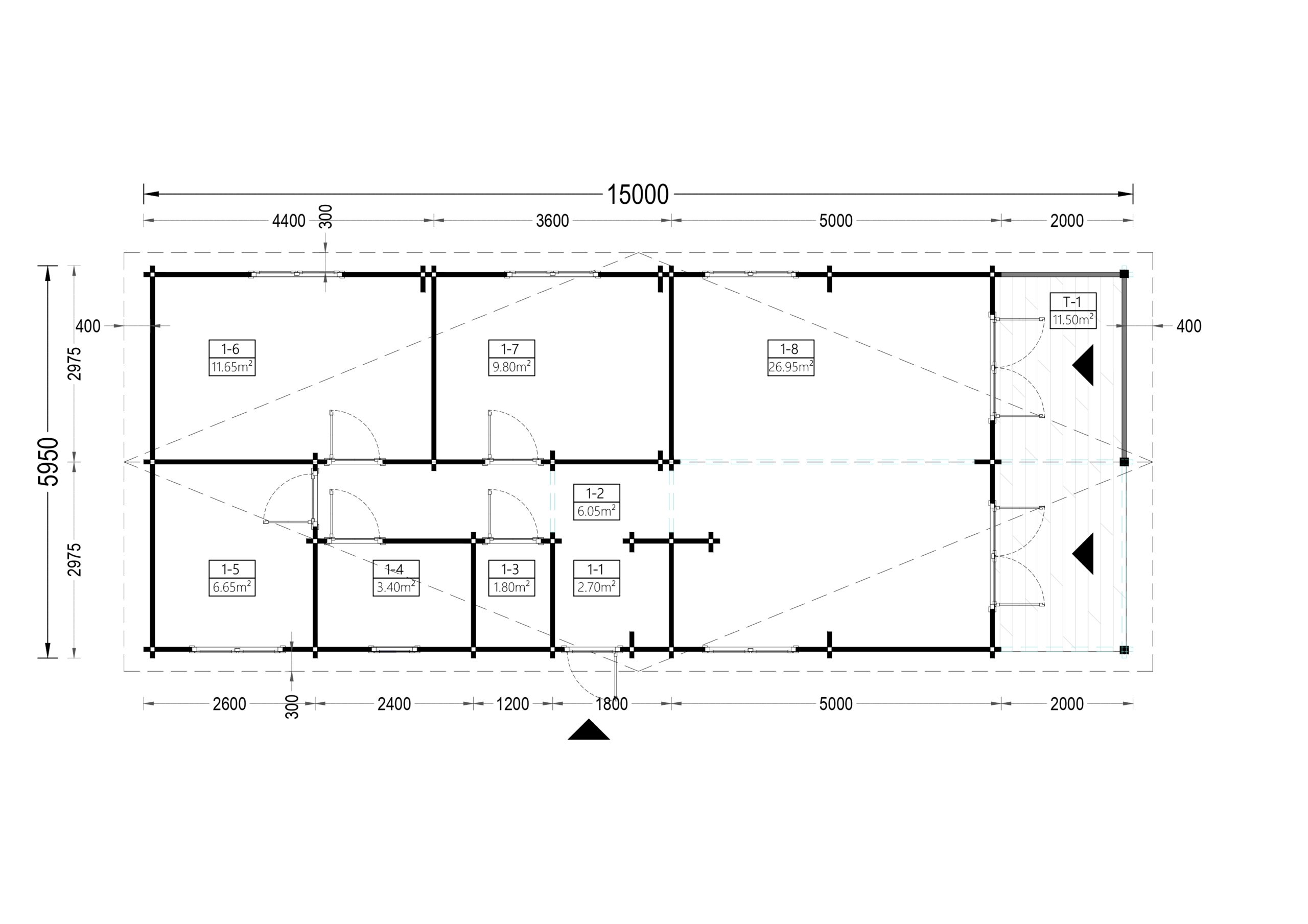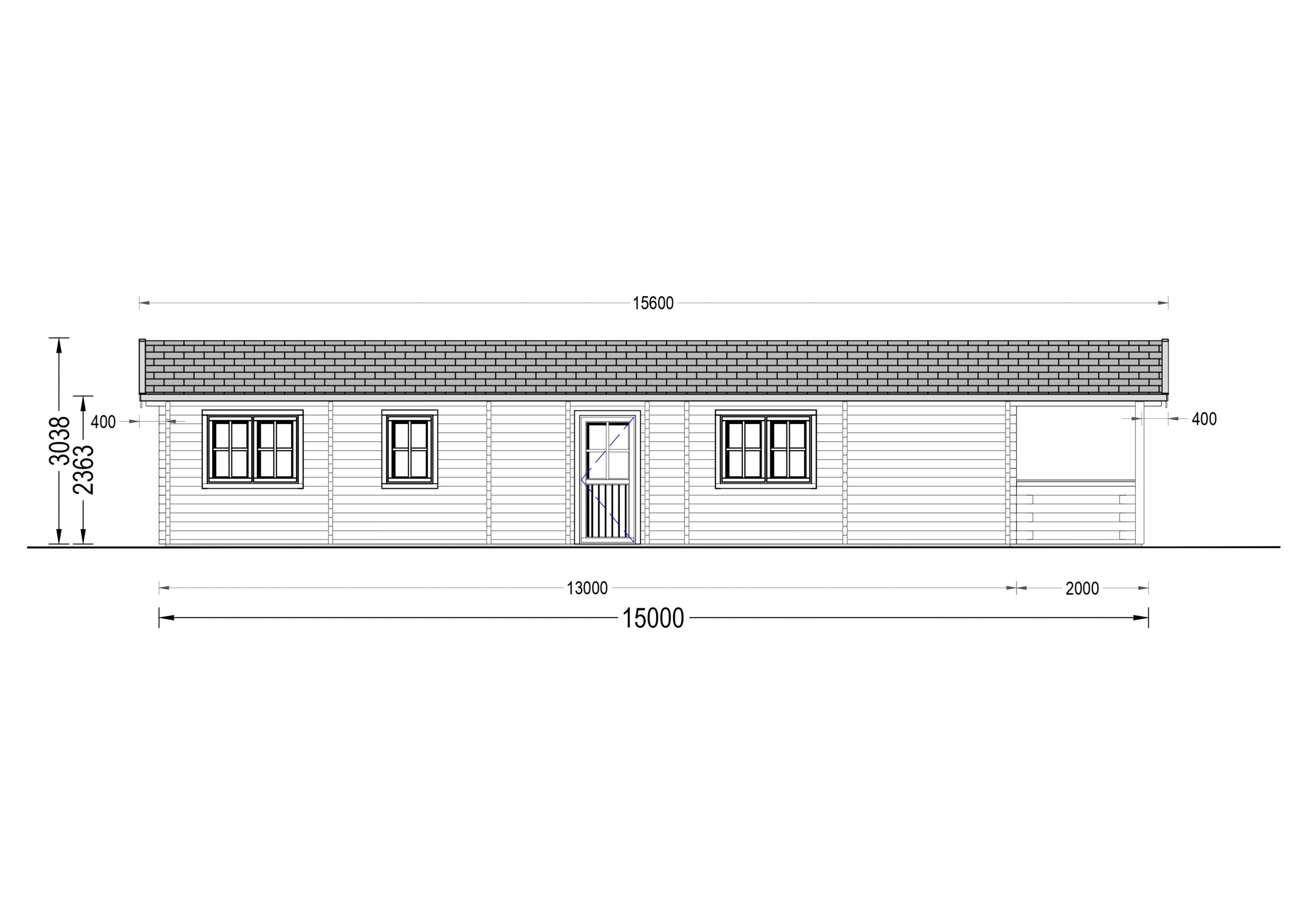 Blockbohlenhaus GOSAU (66 mm), 6×15 m, 90 m²