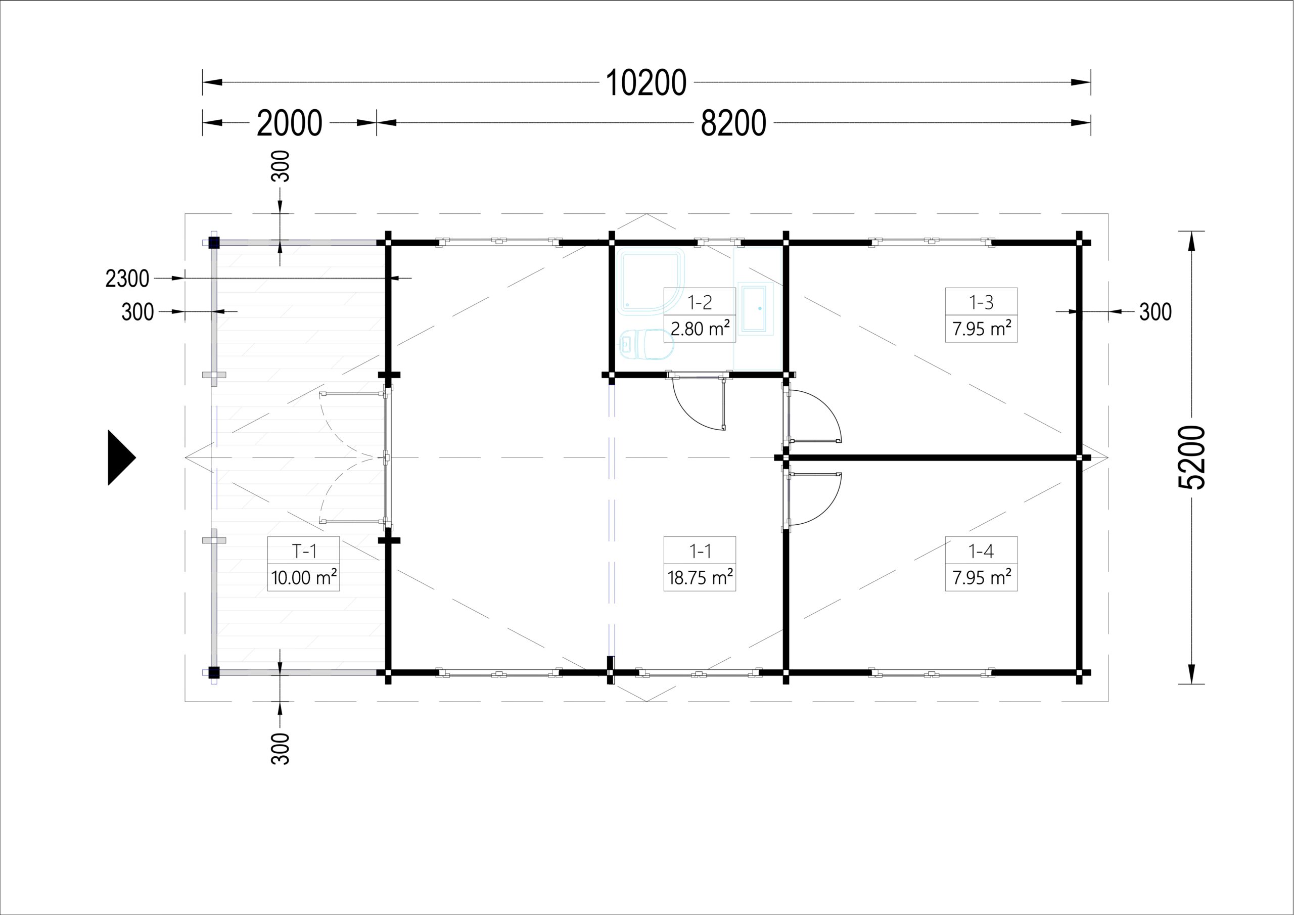 Blockbohlenhaus HANNES (66 mm) 42 m²