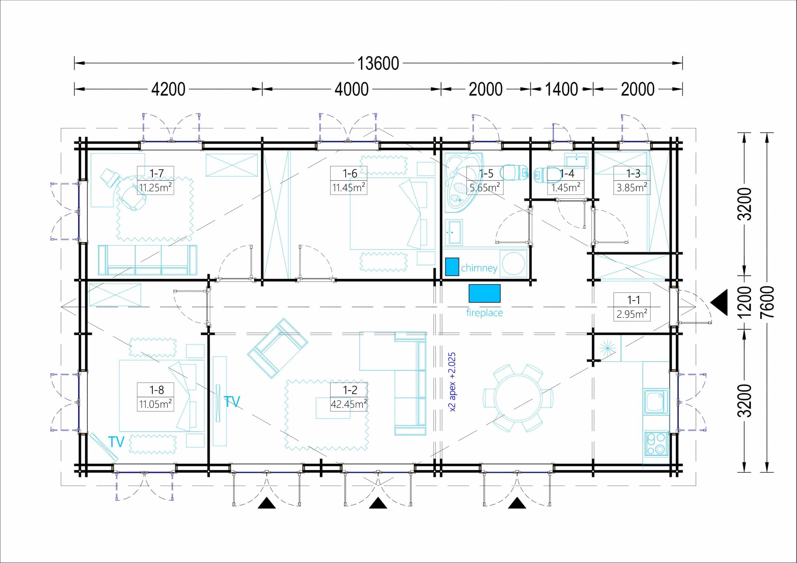 Blockbohlenhaus BERNAU (44 + 44 mm) 103 m²