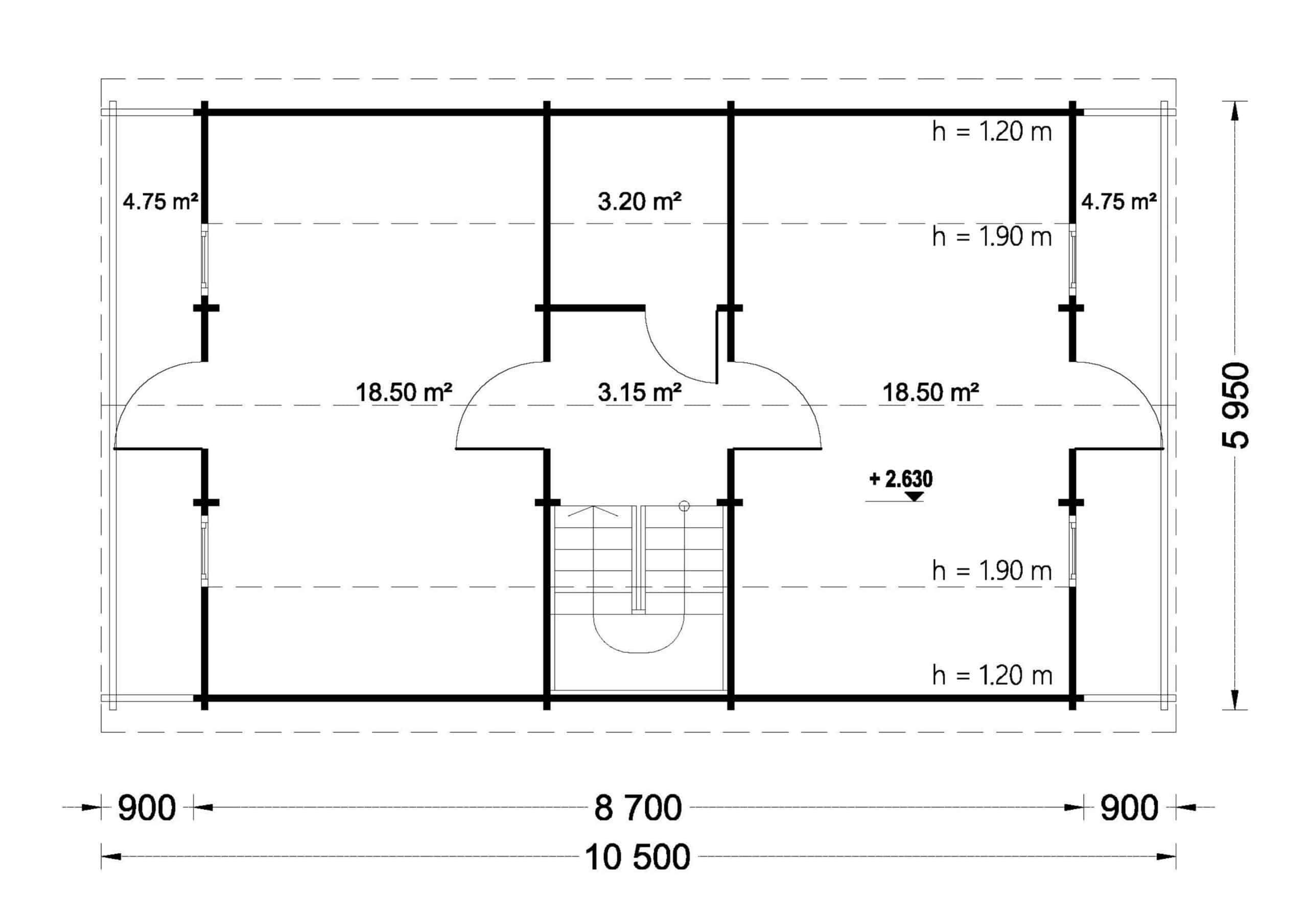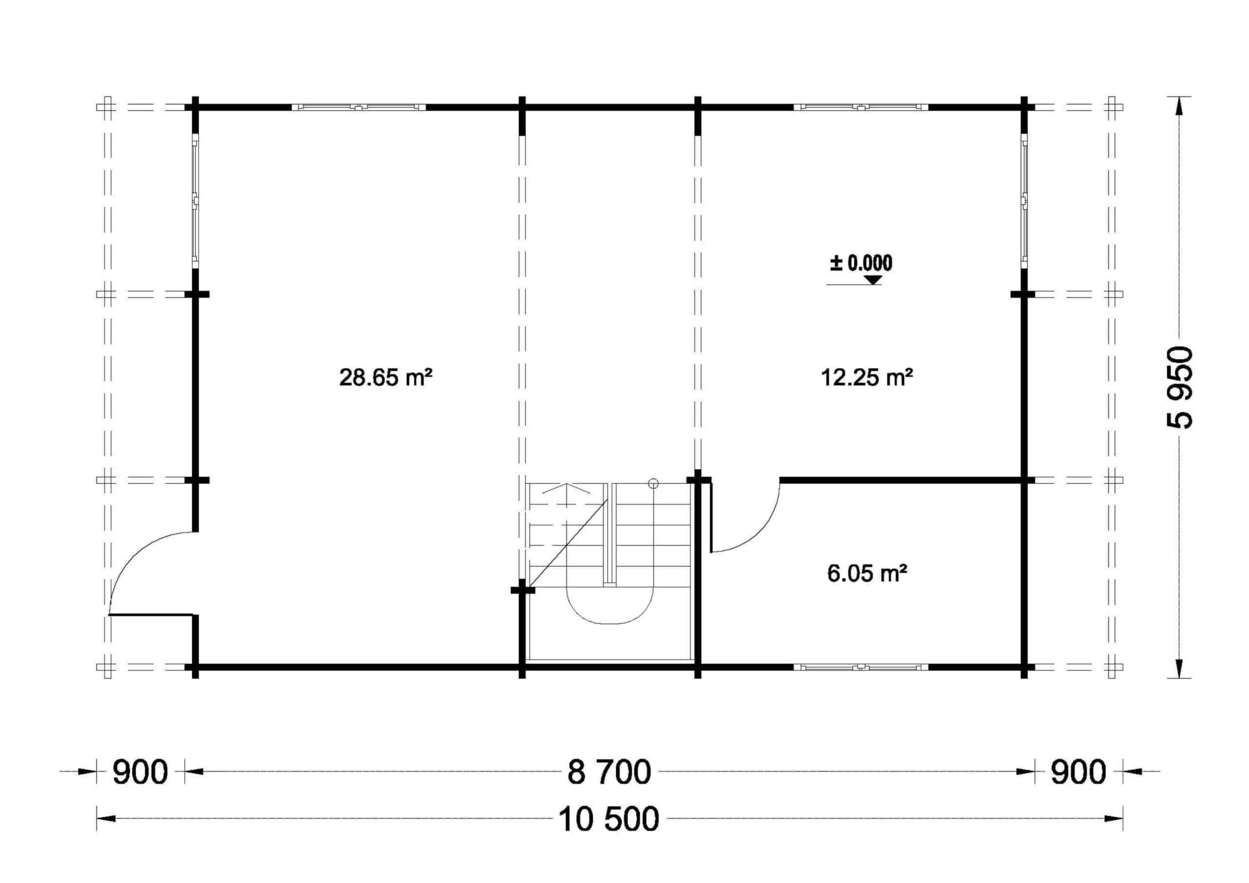 Das Blockbohlenhaus LISA bietet einen praktischen zweigeschossigen Grundriss, der ein Höchstmaß an Privatsphäre und Komfort gewährleistet. Die kluge Aufteilung ermöglicht separate Wohn- und Ruhezonen im Haus.