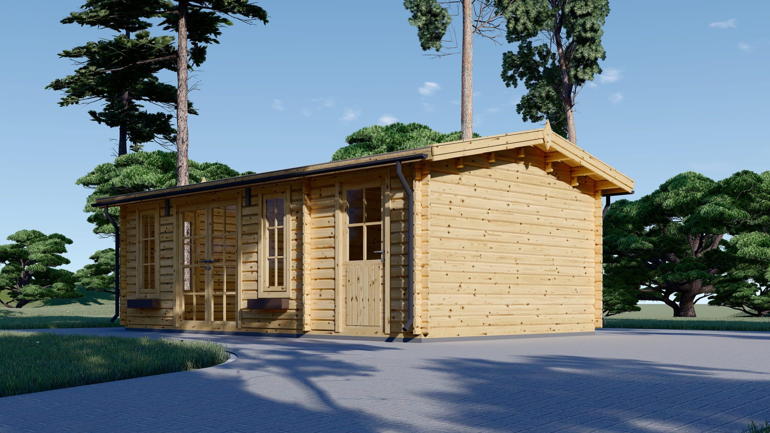 Das Blockbohlenhaus LEA (44 mm) ist eine großartige Wahl für alle, die nach einer geräumigen und vielseitigen Lösung für ihren Garten suchen. Mit einer Fläche von 28 Quadratmetern bietet es ausreichend Platz für eine Vielzahl von Aktivitäten und Bedürfnissen.