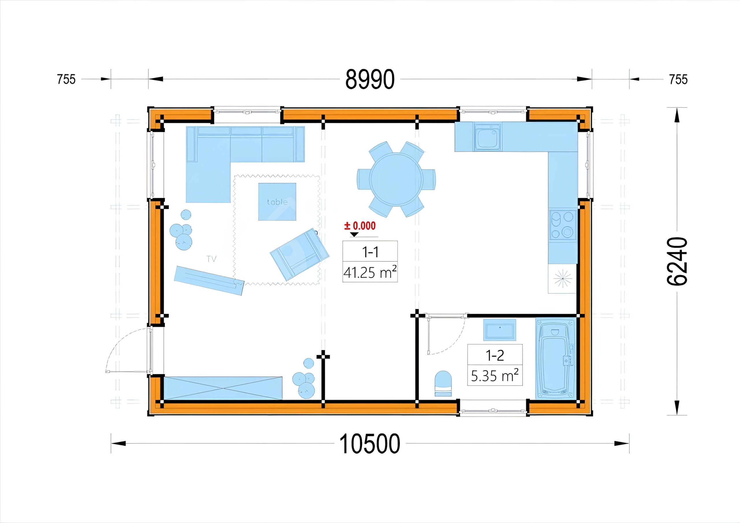 Die Wärmedämmung des Holzhauses LISA entspricht den höchsten Standards für Wohngebäude. Mit einer 300 mm dicken Dachisolierung, 150 mm dicken isolierten Böden und 200 mm dicken isolierten Wänden wird dafür gesorgt, dass Sie sich das ganze Jahr über wohlfühlen, unabhängig davon, ob Sie das Haus als Erst- oder Zweitwohnsitz nutzen.