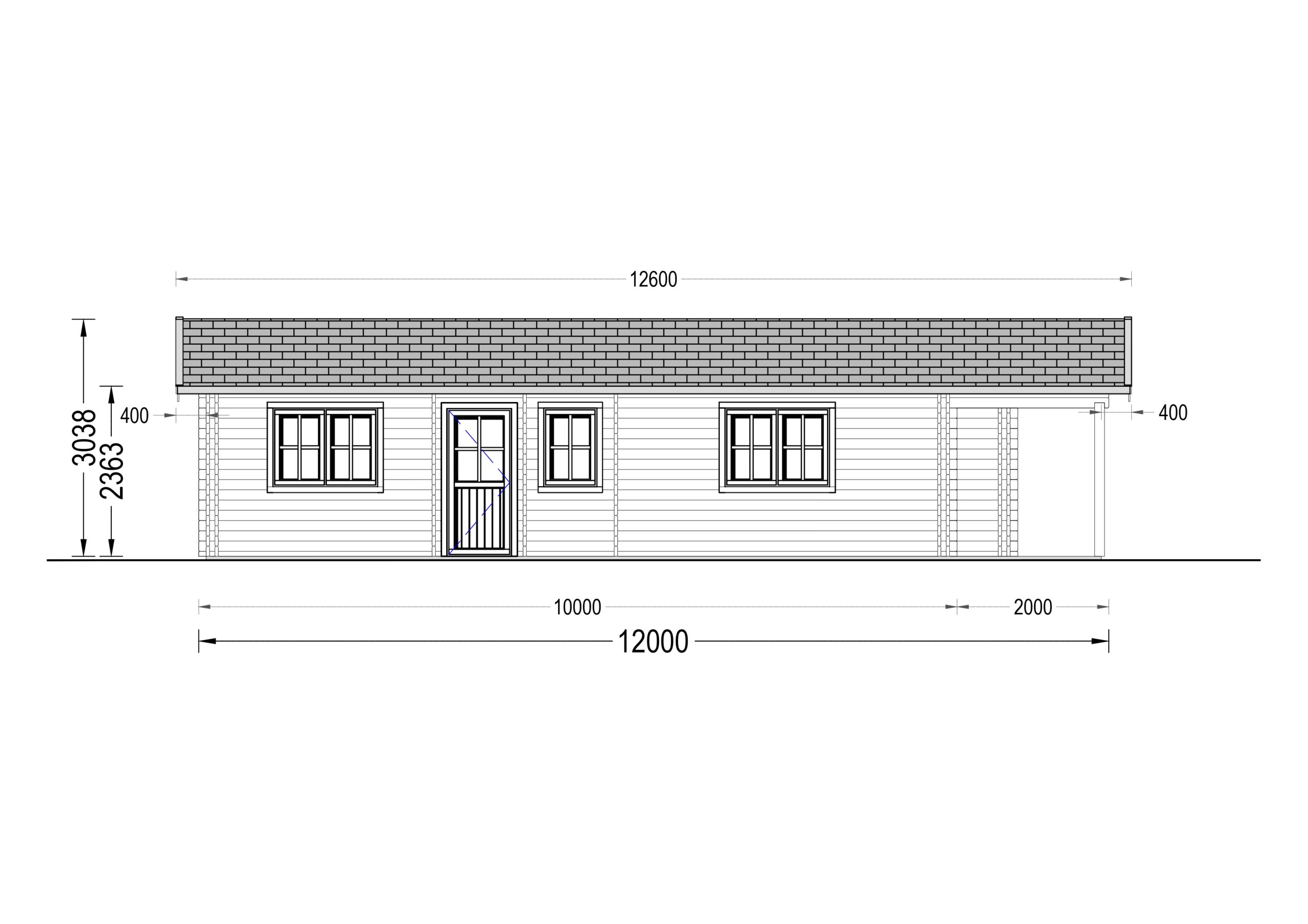 Blockbohlenhaus LUDWIG (44 + 44mm), 6x12m, 72m²
