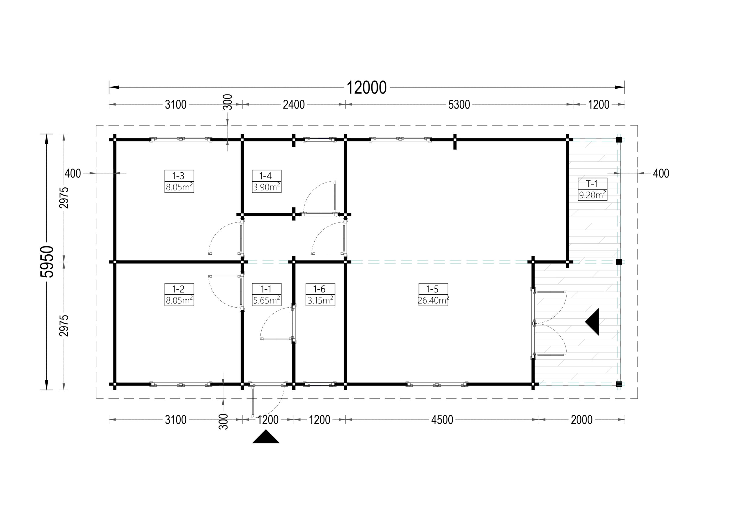 Blockbohlenhaus LUDWIG (66mm), 6x12m, 72m²