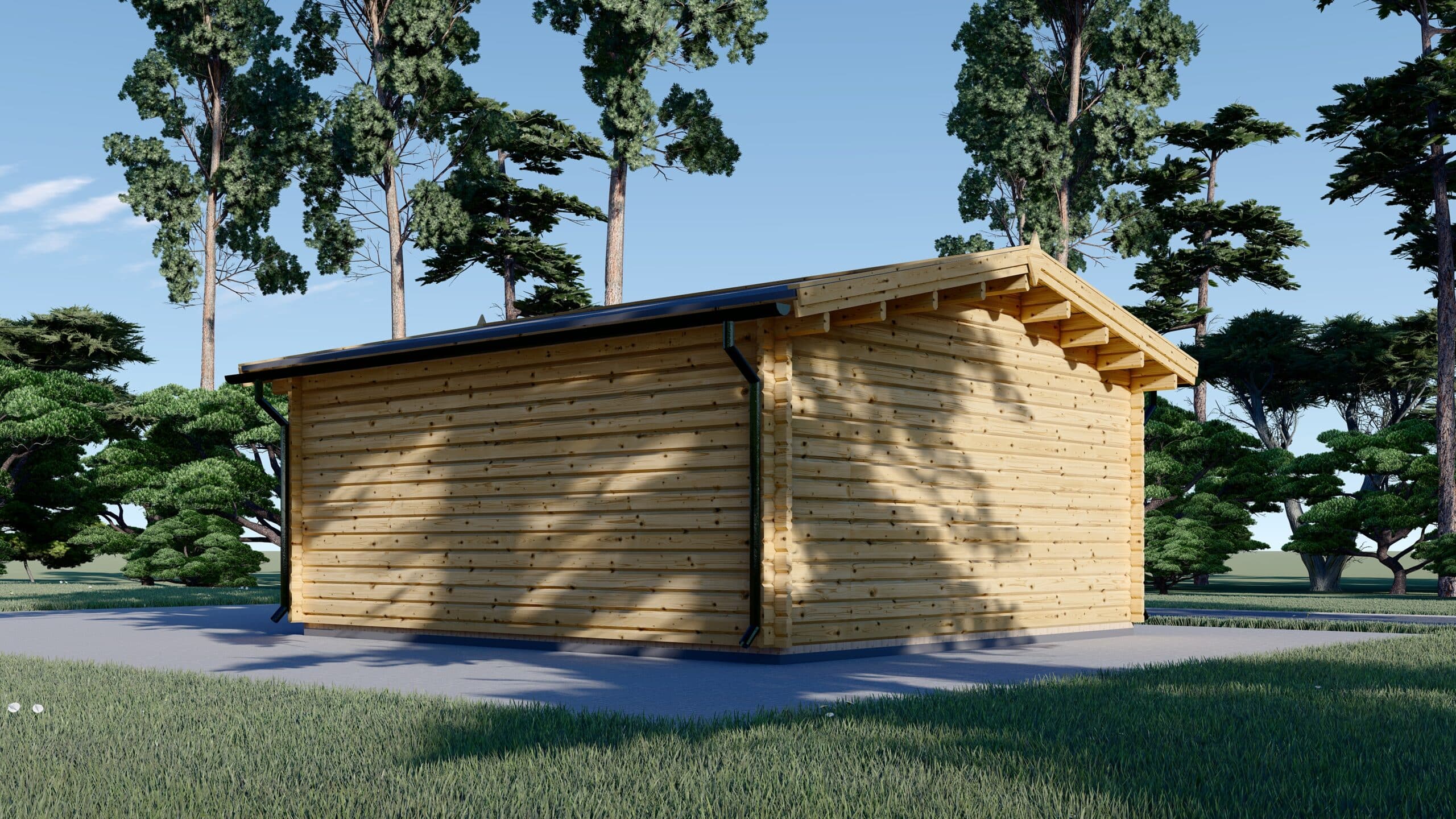 Das Blockbohlenhaus MARIA bietet einen modernen und komfortablen Raum im Garten. Mit seiner großzügigen Fensterfront, dem klassischen Dachüberstand und der optionalen Terrasse schafft es eine harmonische Verbindung zwischen Innen- und Außenraum. Das hochwertige Nadelholz gewährleistet eine langlebige und umweltfreundliche Konstruktion.