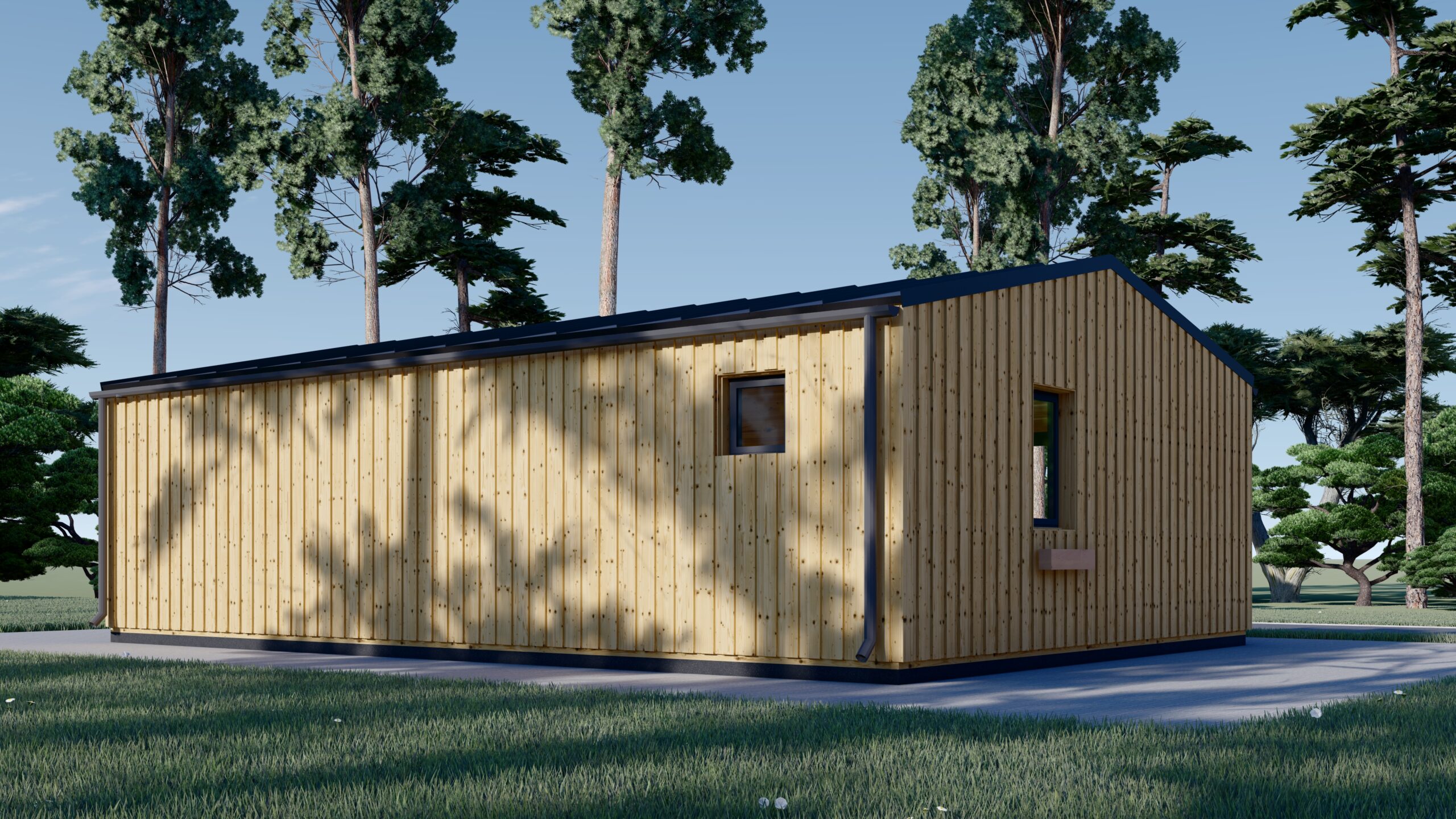 Blockbohlenhaus MARTA Modern 44mm + Holzverschalung – Moderner Rückzugsort mit 48m² Grundfläche