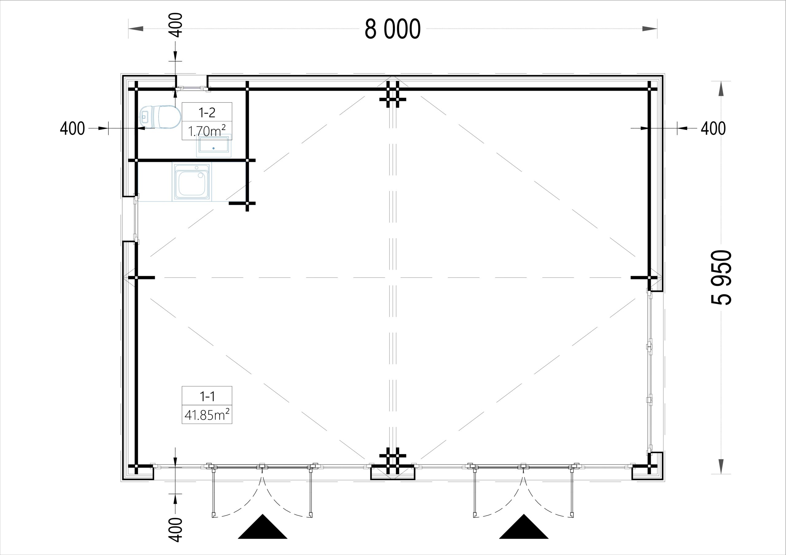 Das Blockbohlenhaus MARTAA Modern, mit einer Wandstärke von 44 mm und zusätzlicher Holzverschalung, bietet eine großzügige Grundfläche von 8x6m und somit 48m², um eine einladende und komfortable Umgebung zu schaffen.
