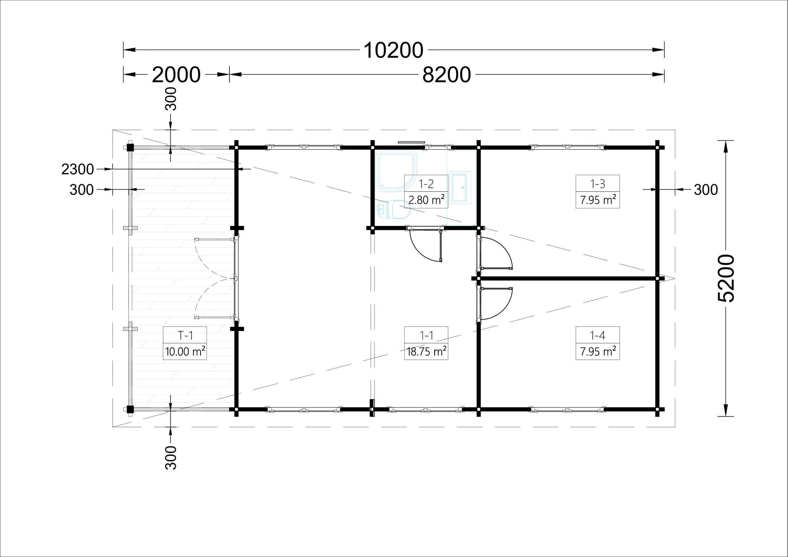 Blockbohlenhaus ERWIN (44 mm) 28 m²