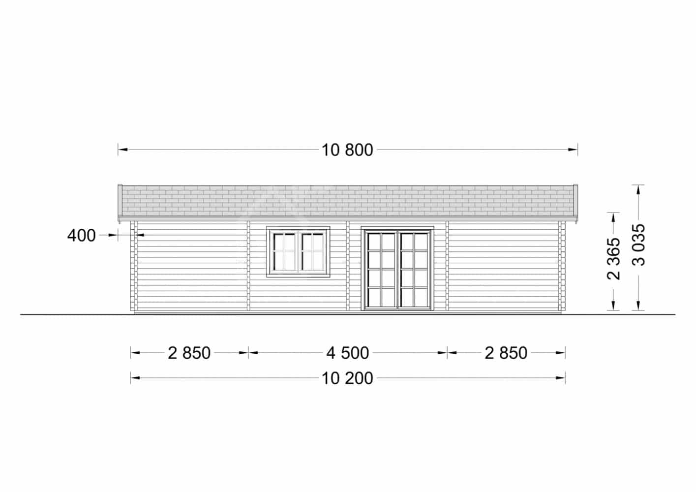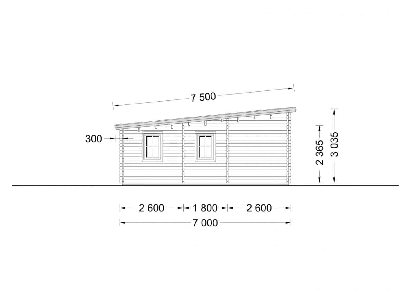Blockbohlenhaus mit Flachdach ULRICH (44, 58 oder 66mm), 70m²