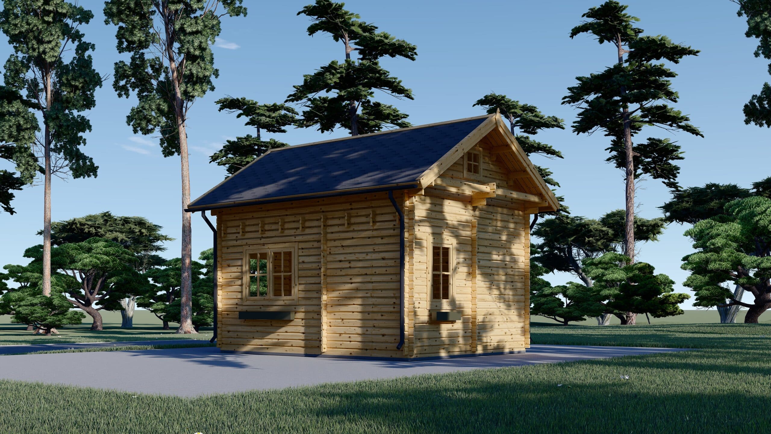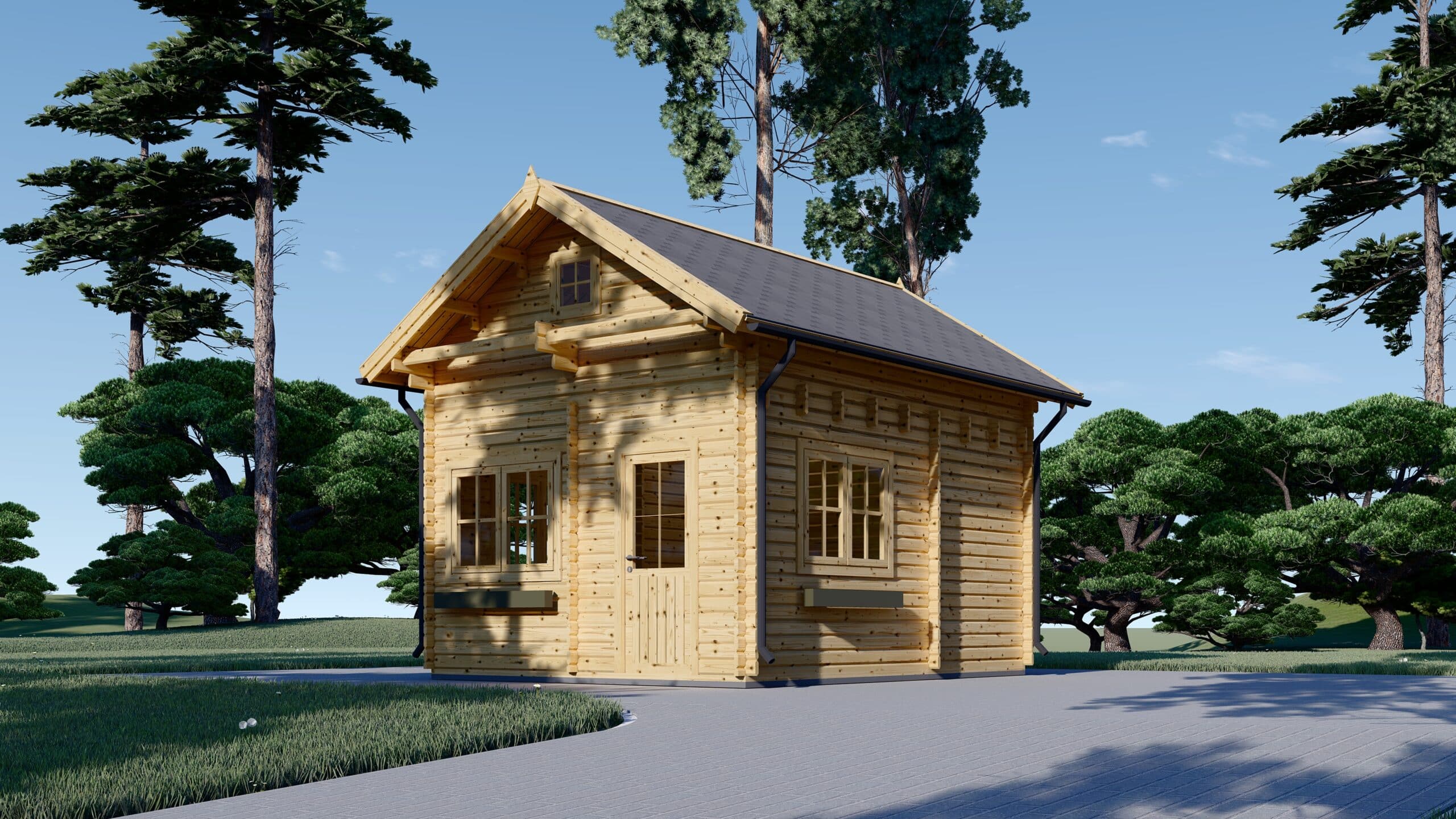 Blockbohlenhaus mit Schlafboden DORNBIRN (44 mm), 20 m² + 16 m²