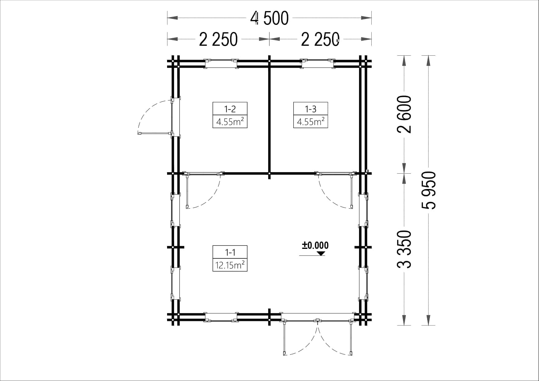 Standardmäßig sind doppelt verglaste Fenster und Außentüren enthalten. Optional können Sie auch PVC-Fenster bestellen.