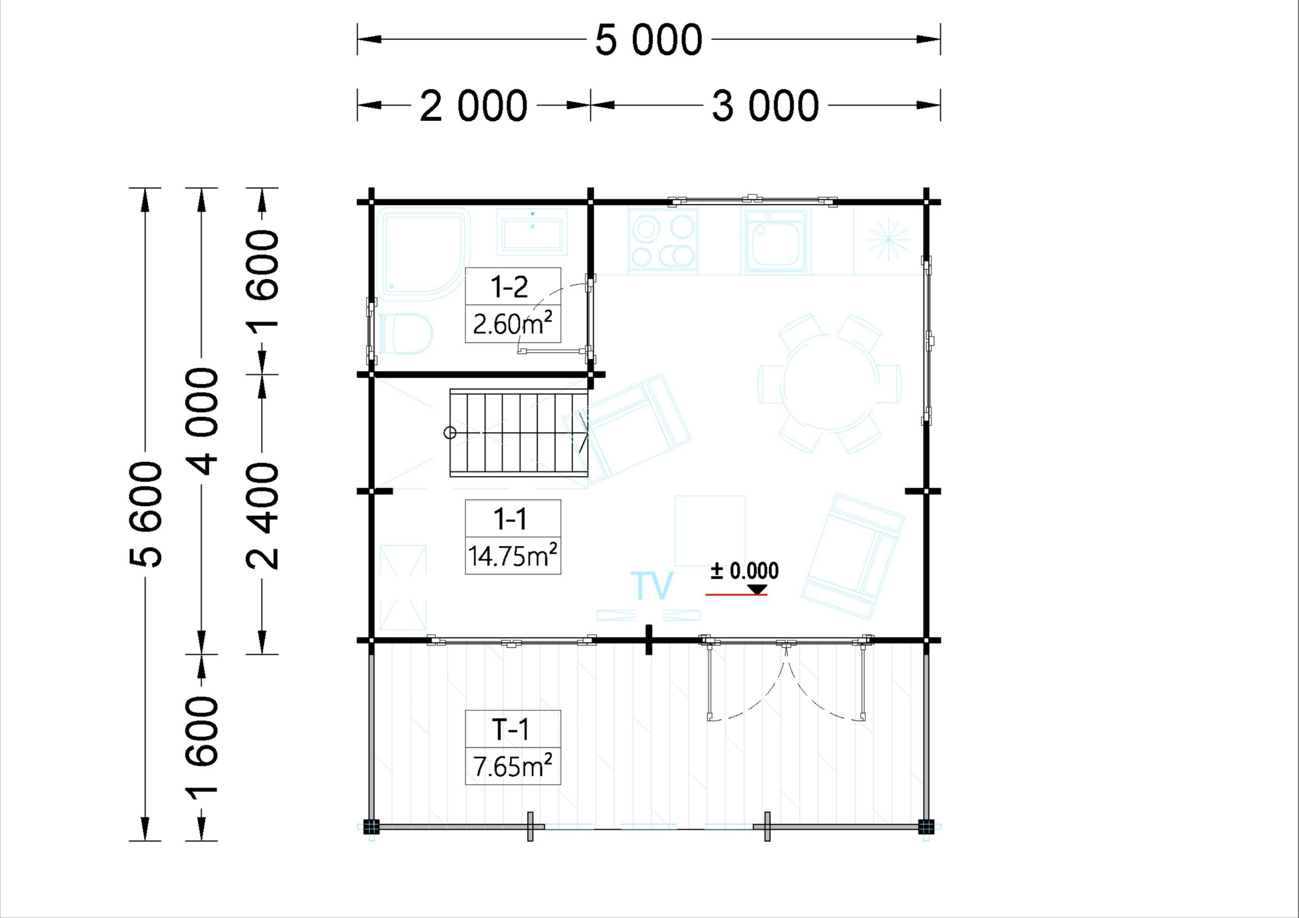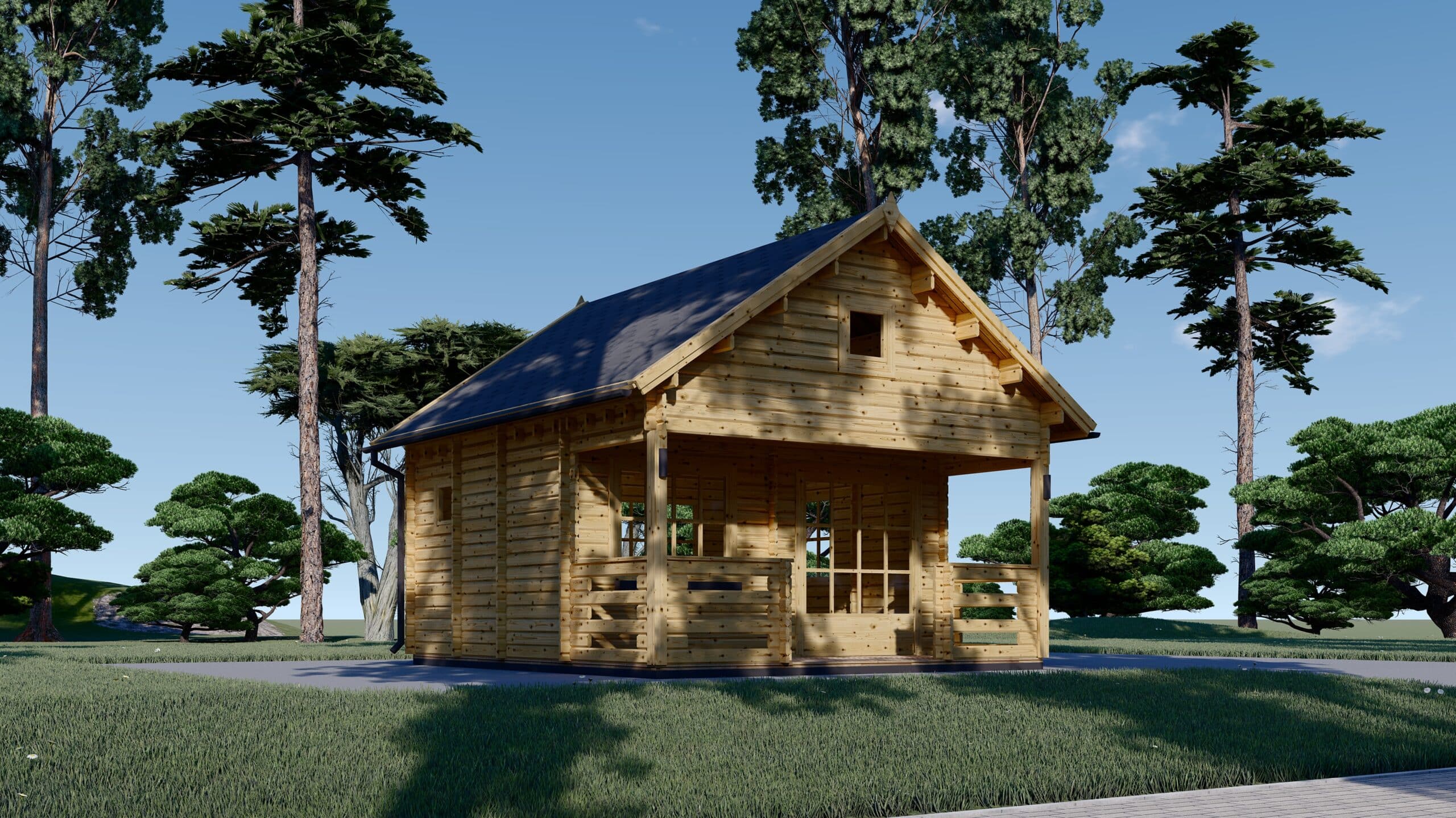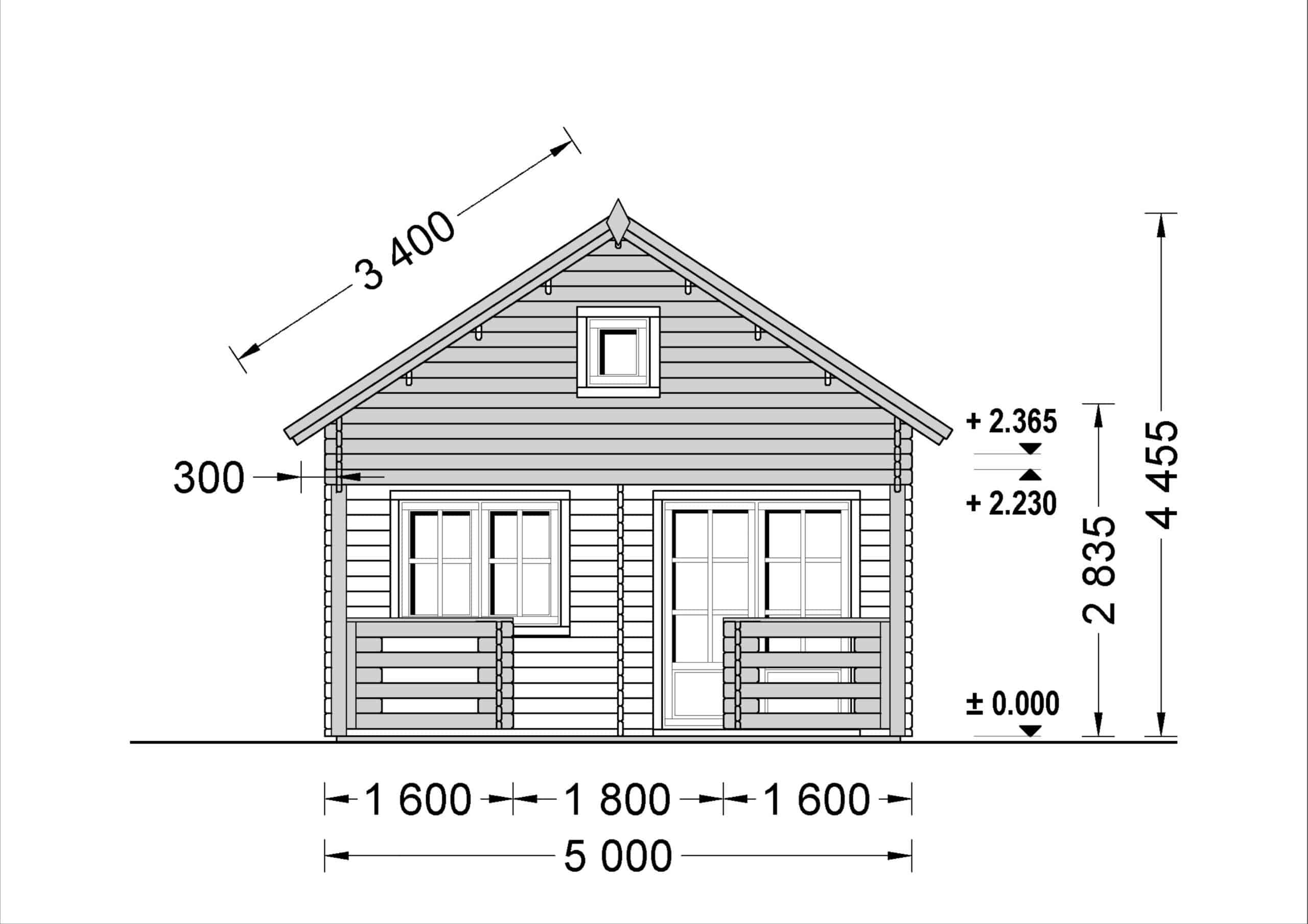 Blockbohlenhaus Tirol mit Schlafboden und Terrasse (44 mm), 20 m² + 8 m²