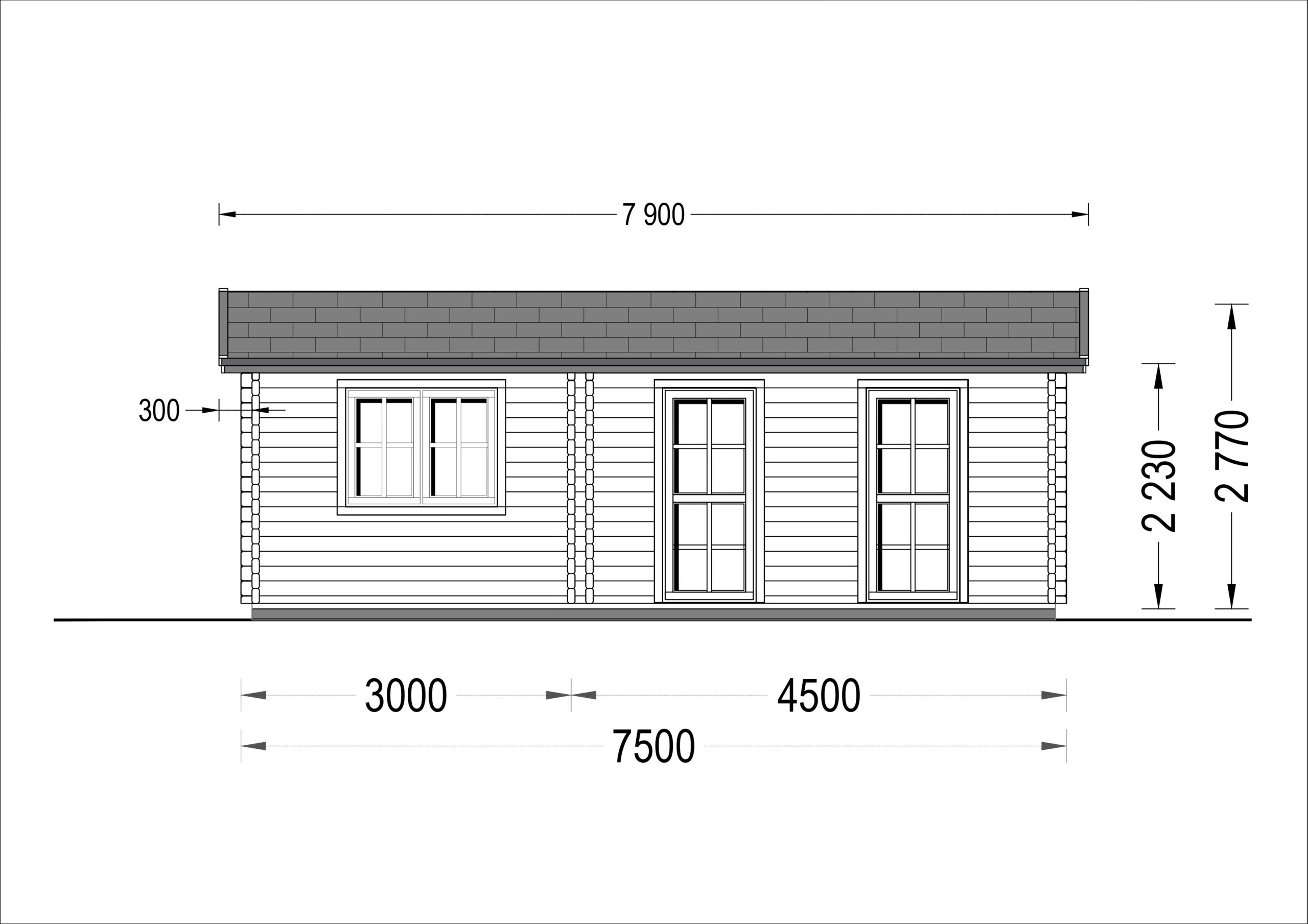 Blockbohlenhaus ERWIN (44 mm) 28 m²