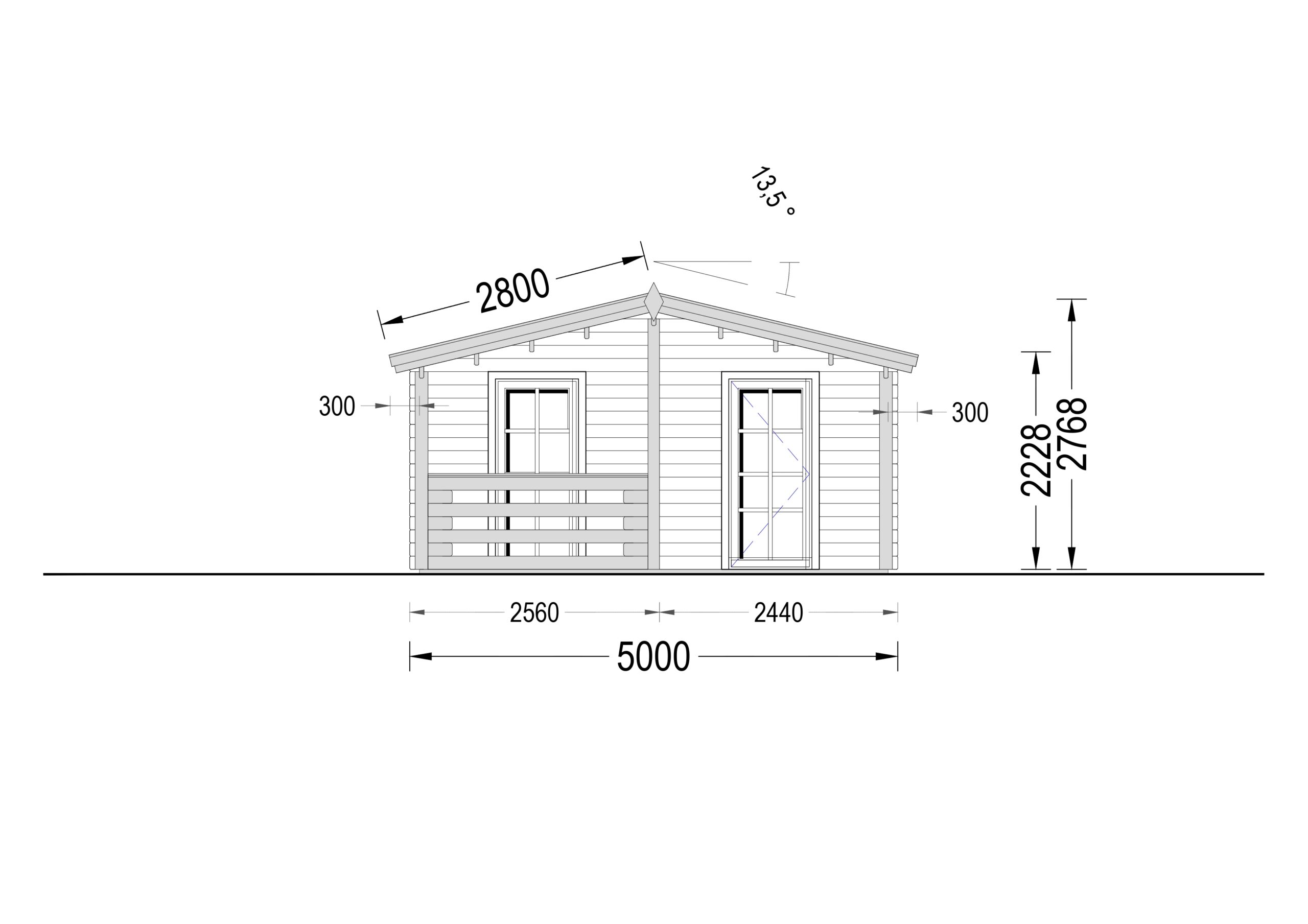 Blockbohlenhaus mit Terrasse ANTON(44 oder 66 mm), 5×9 m, 35 m² + 8m²