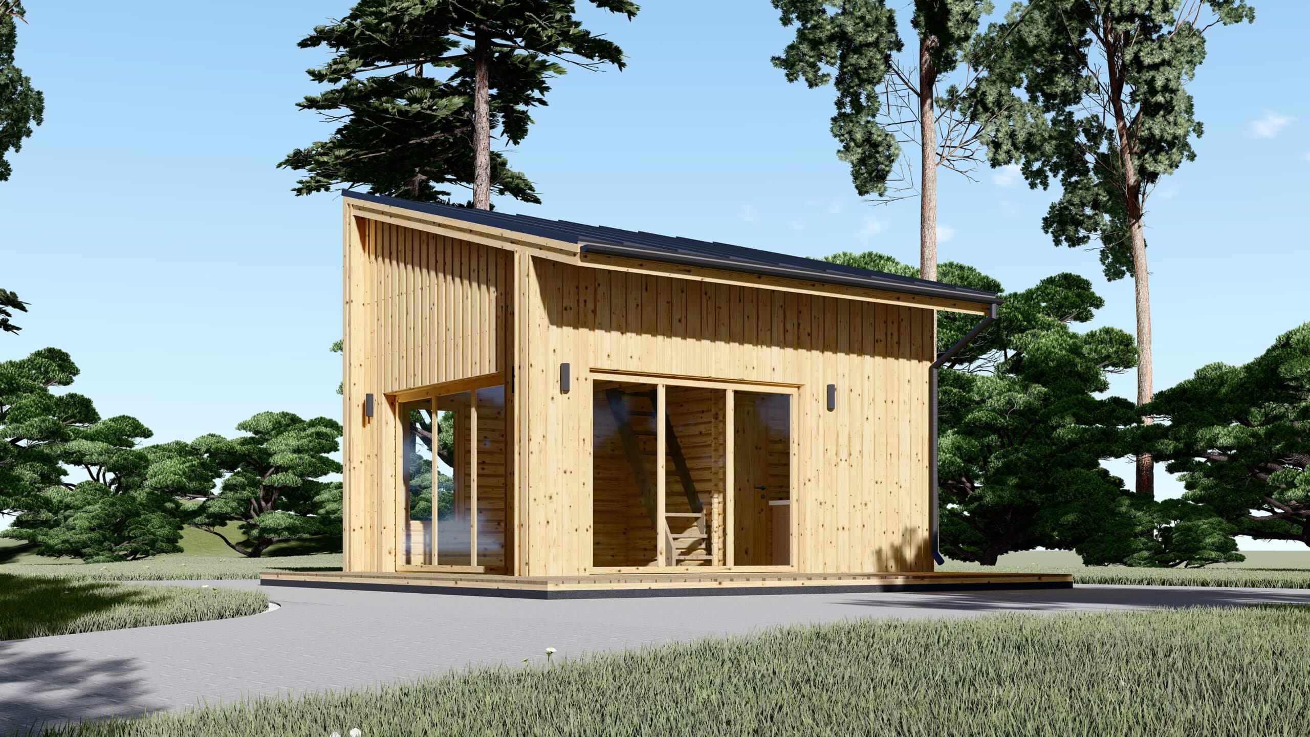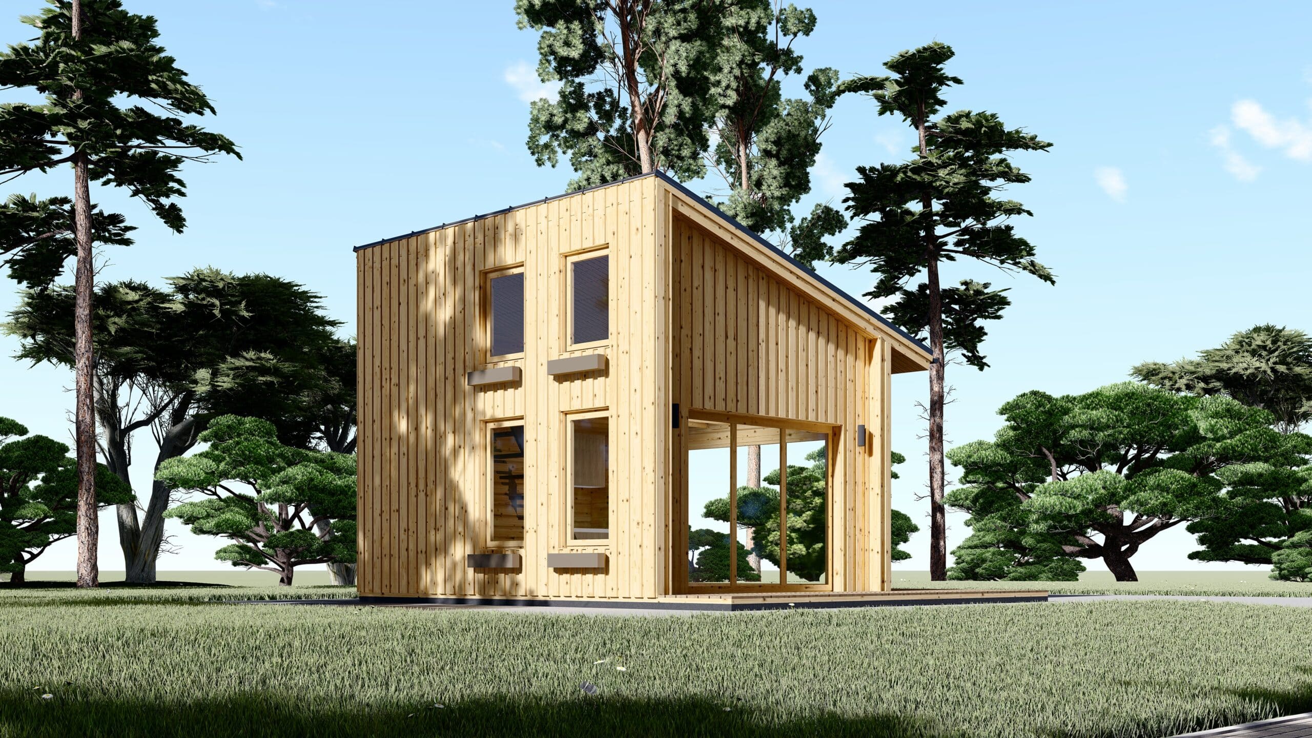 Entdecken Sie mit unserem Holzhaus SANDRA eine faszinierende Kombination aus außergewöhnlichem Design, moderner Architektur und umweltfreundlichem Wohnen. Dieses Modell ist der perfekte Glücksgriff für all jene, die einen kompakten, stilvollen und bezahlbaren Wohnraum für Kurzaufenthalte, sei es allein oder zu zweit, suchen.