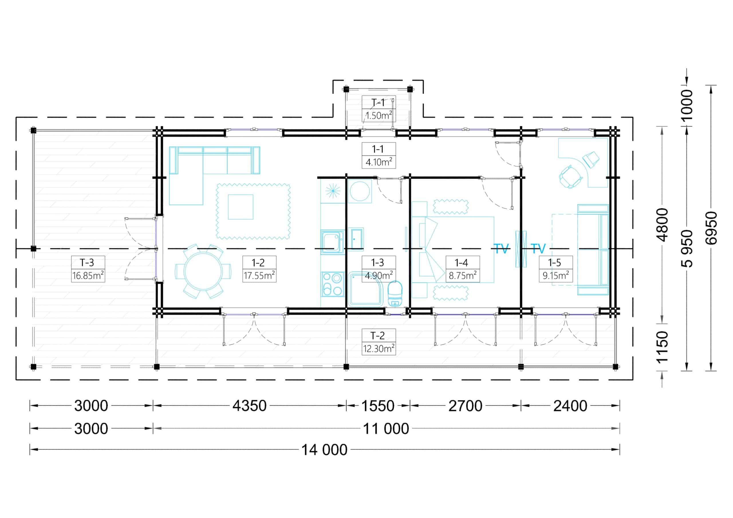 Willkommen im Blockbohlenhaus TRAUNSEE mit einer Wandstärke von 44+44 mm und einer Fläche von 50 m². Hier sind die Highlights des Modells: