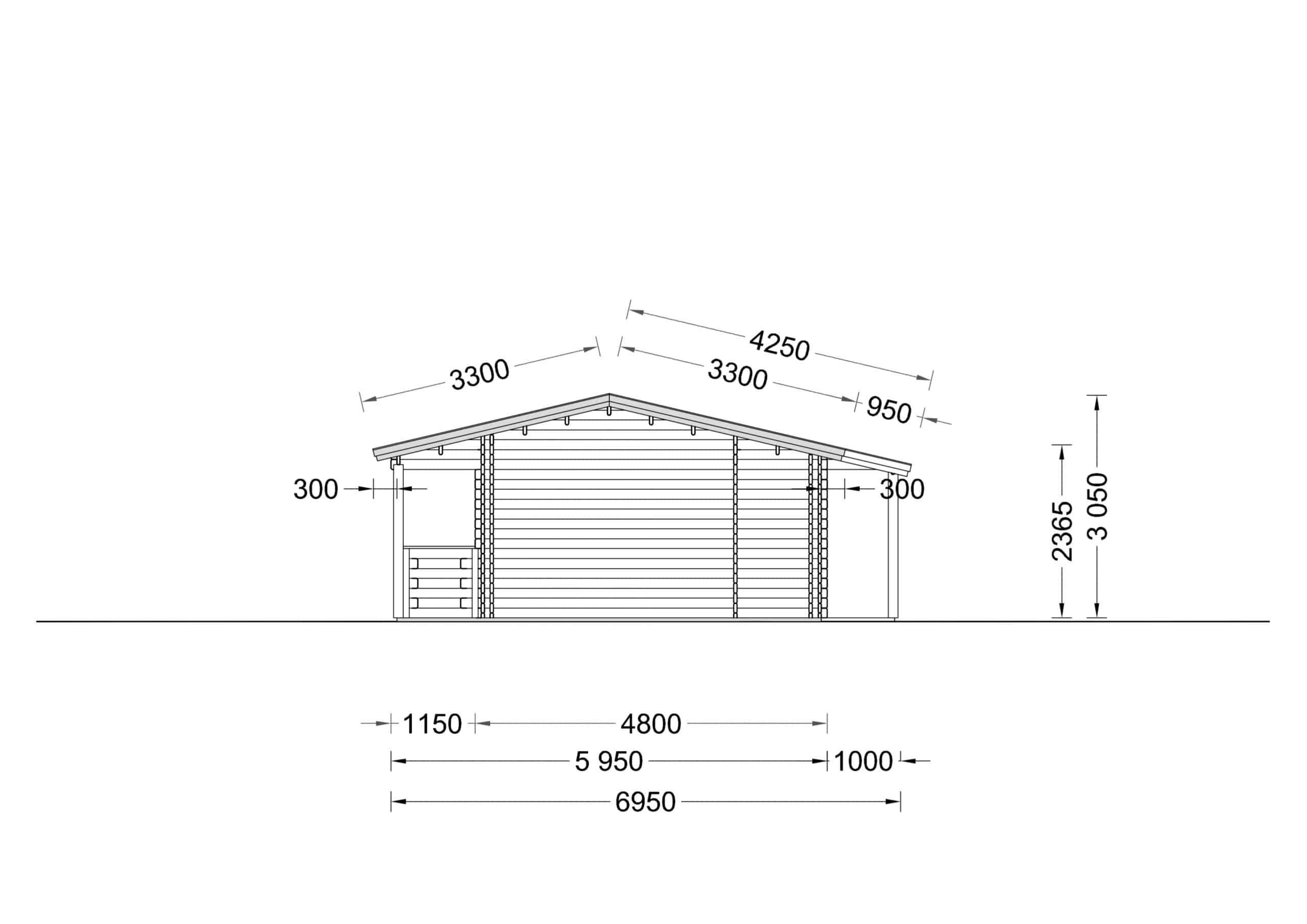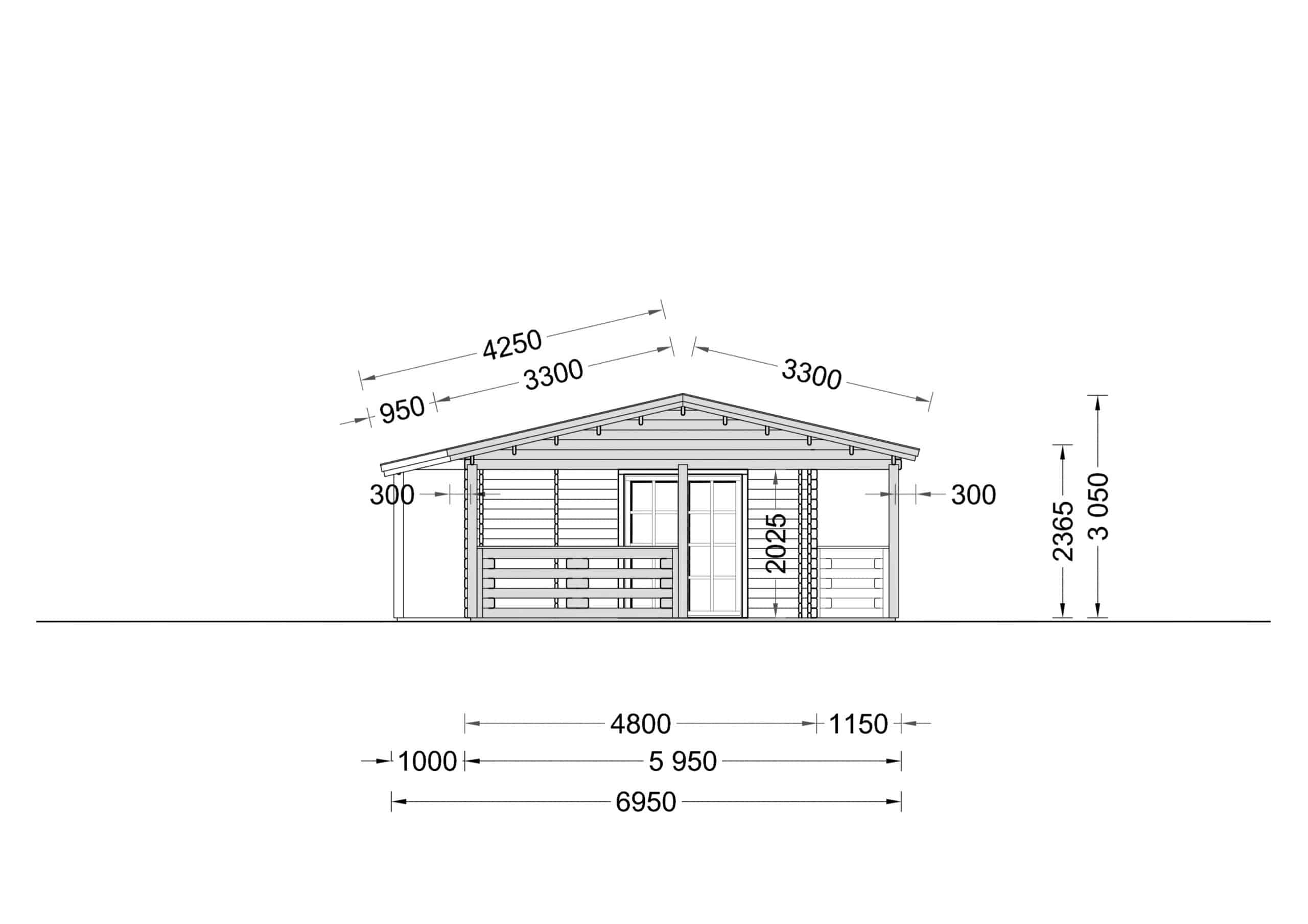 Blockbohlenhaus ARMIN (44 mm) 31 m² mit Pultdach
