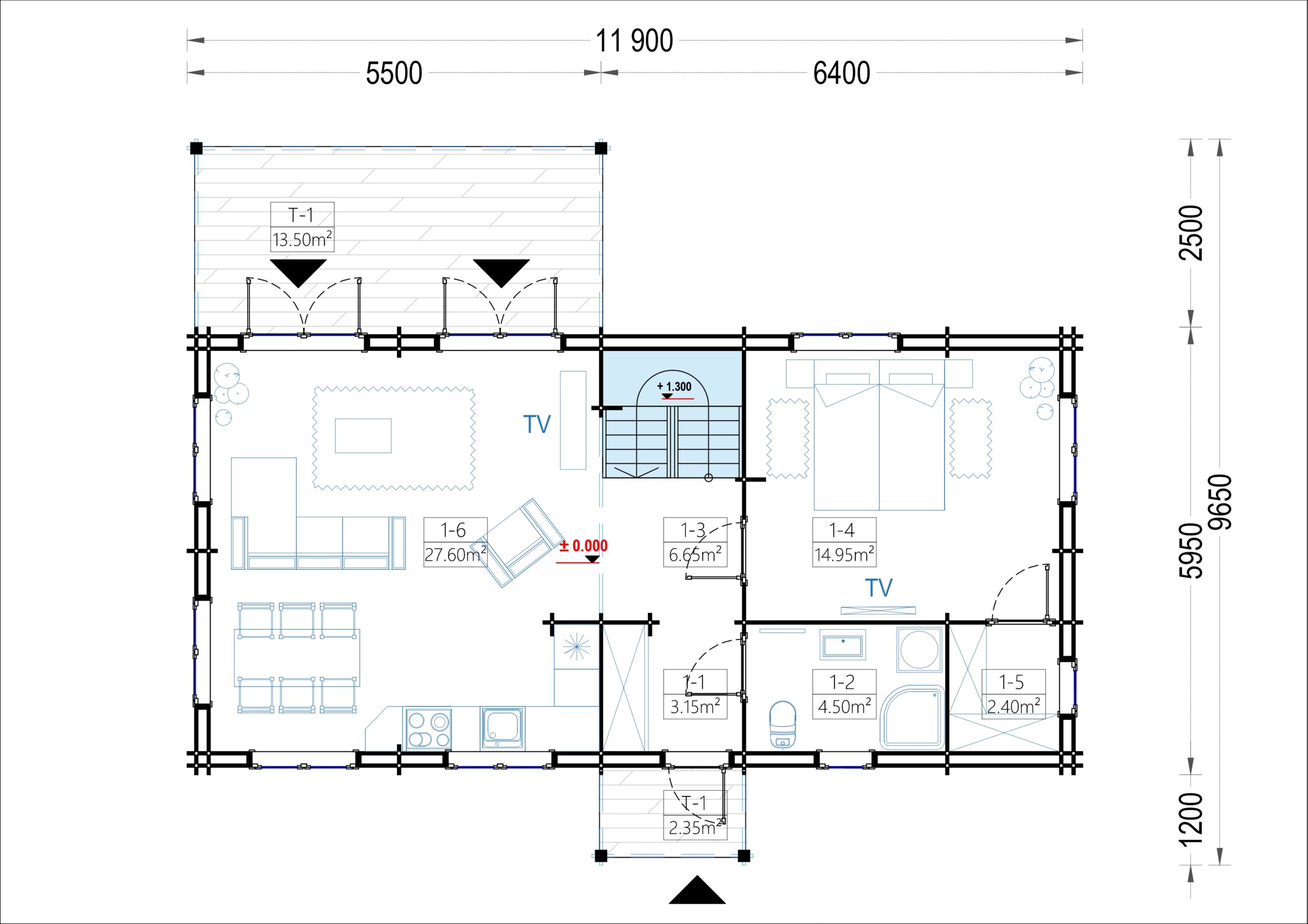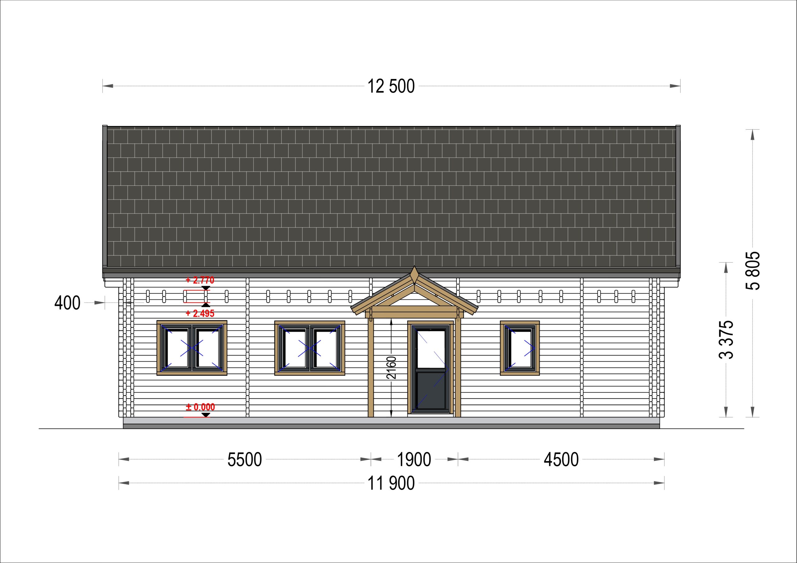 Blockbohlenhaus VERENA (44 + 44mm), 127m²