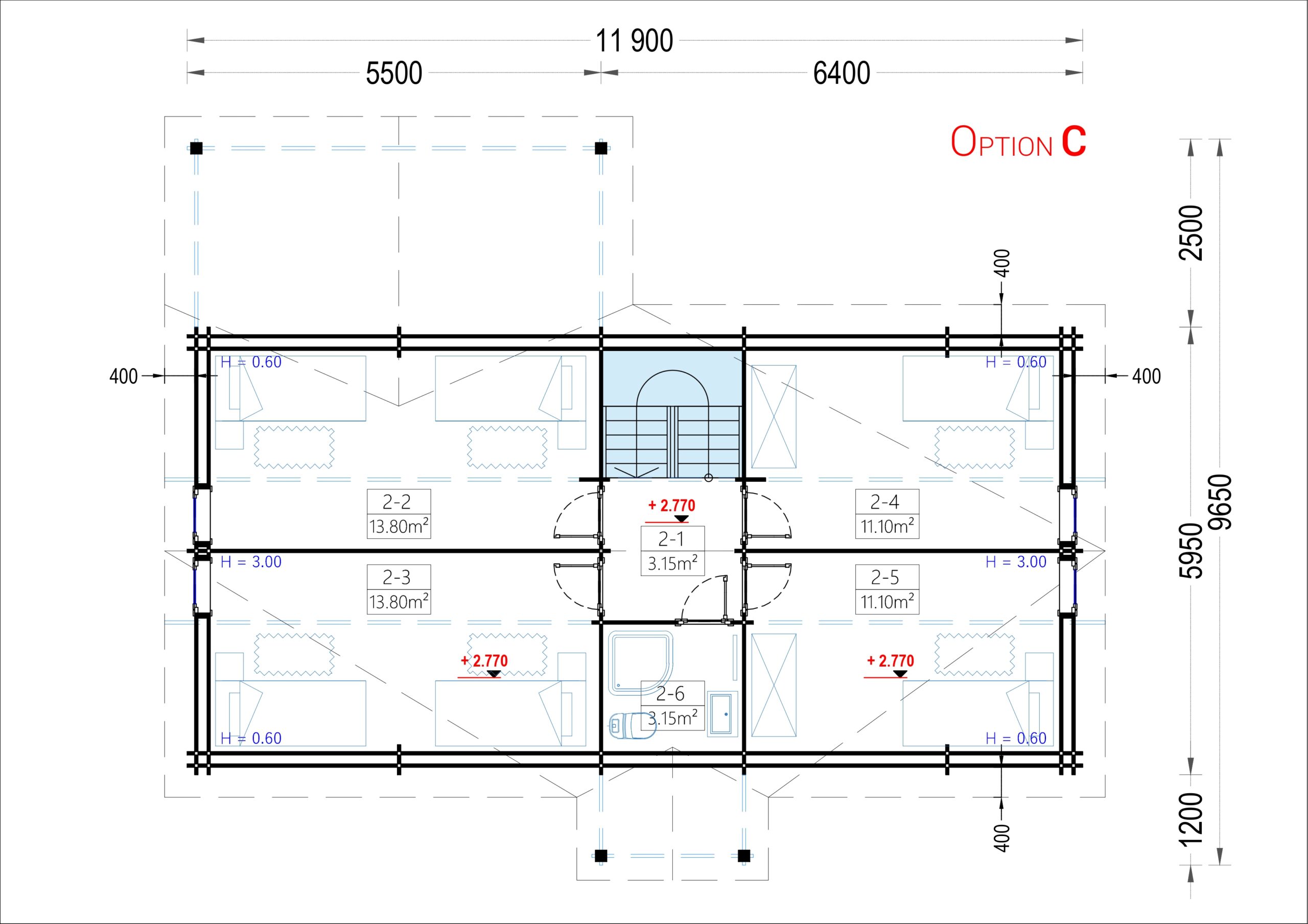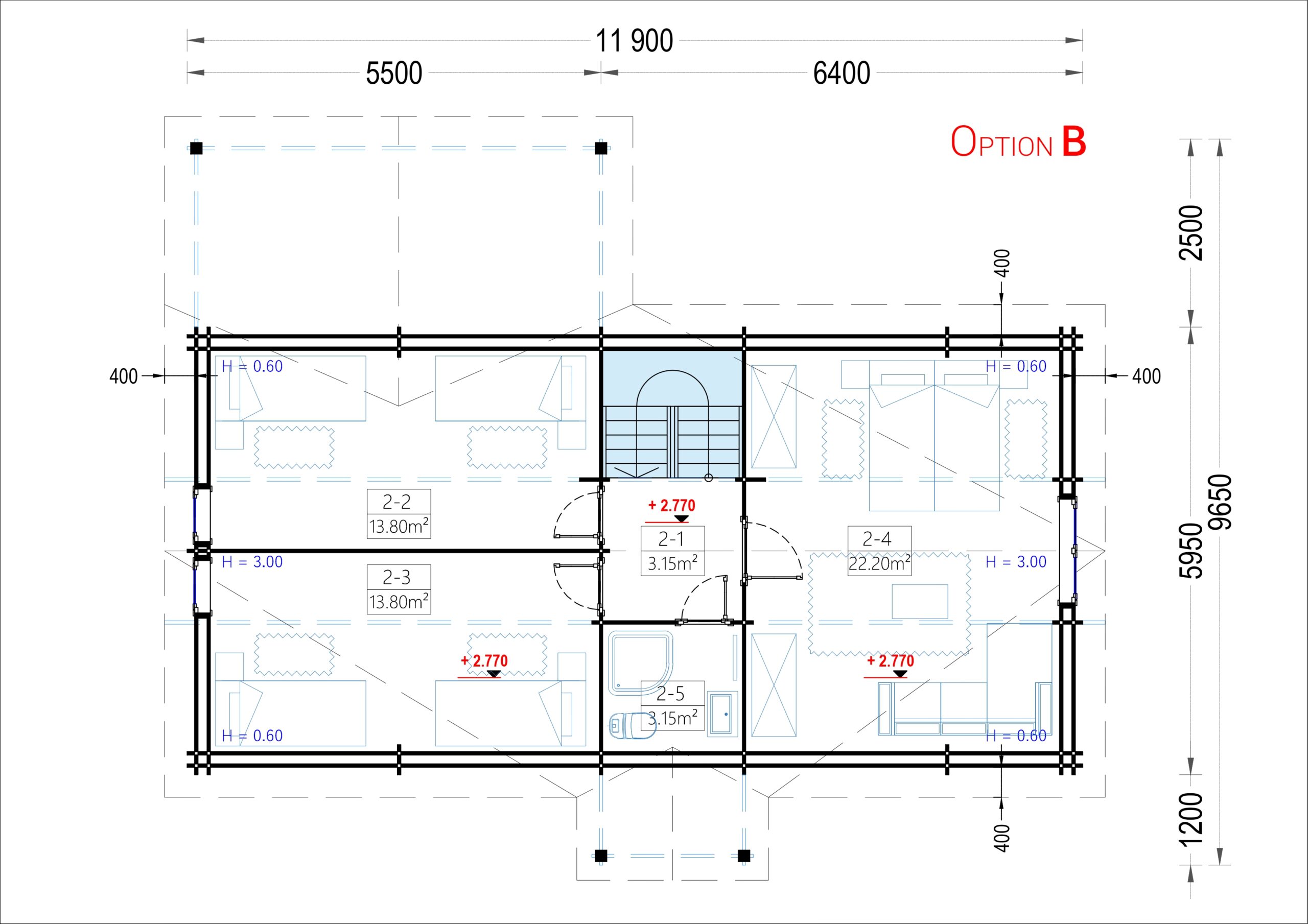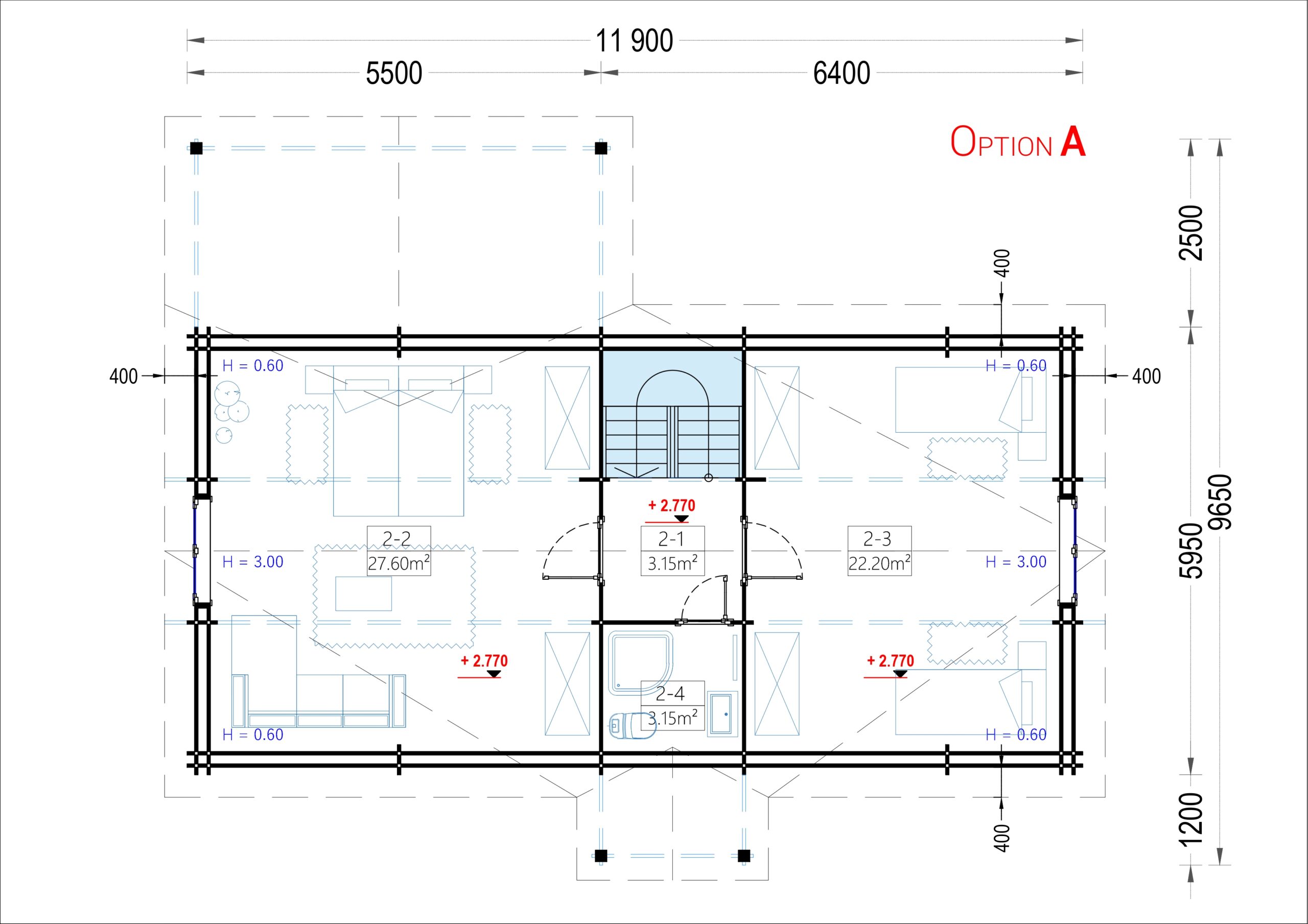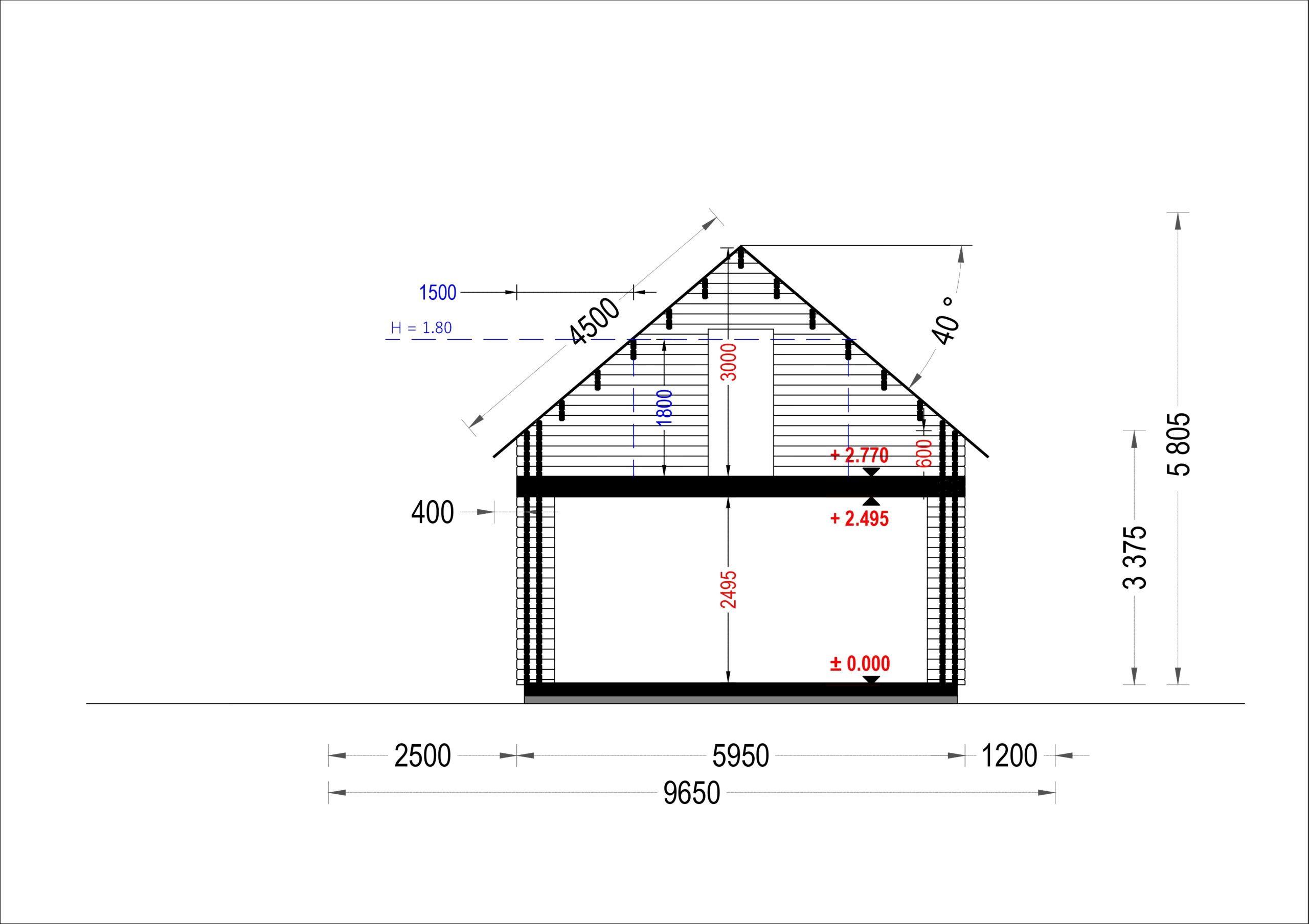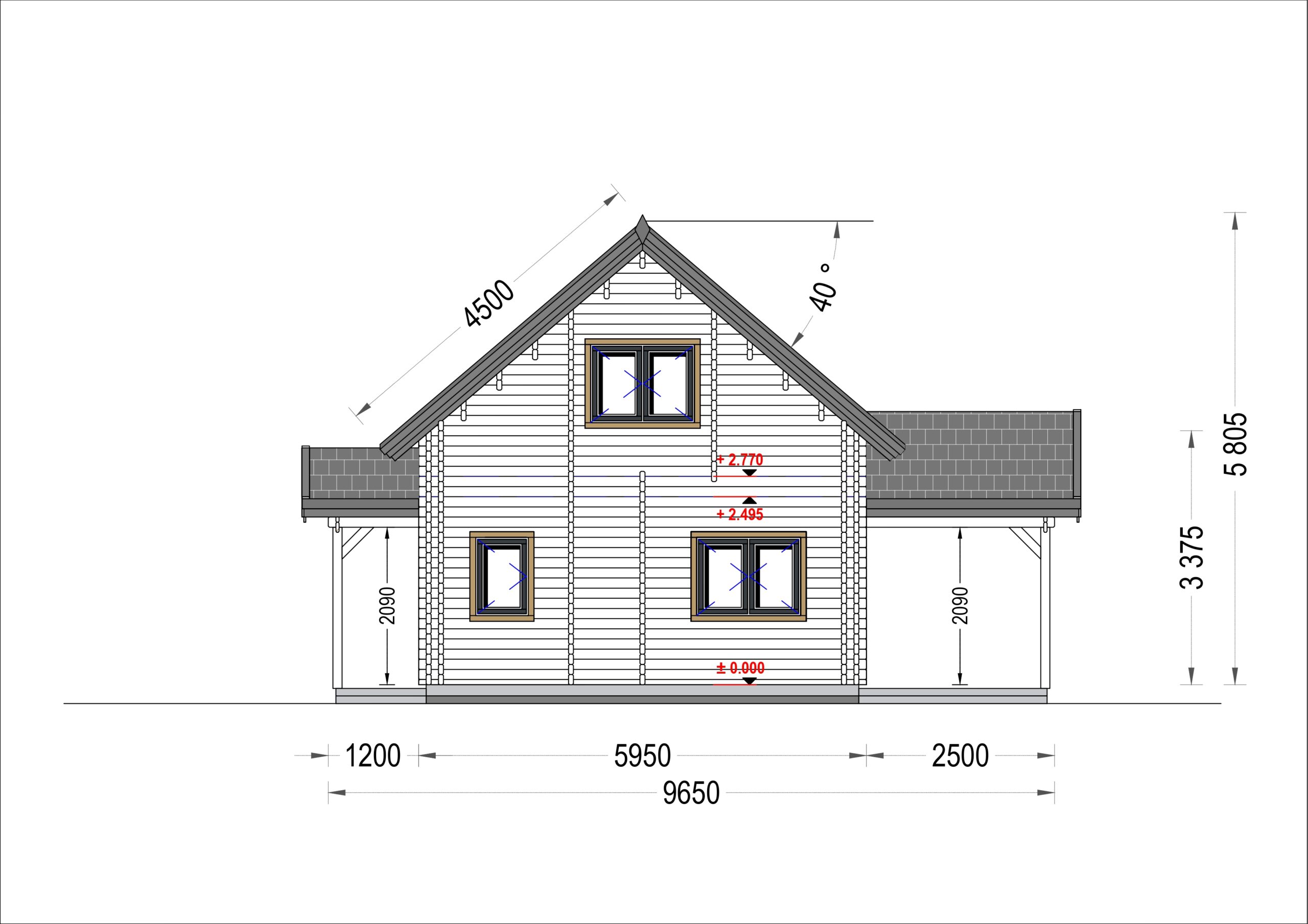 Premium Blockbohlenhaus Innsbruck (44 mm) 36 m² mit 14 m² Schlafboden