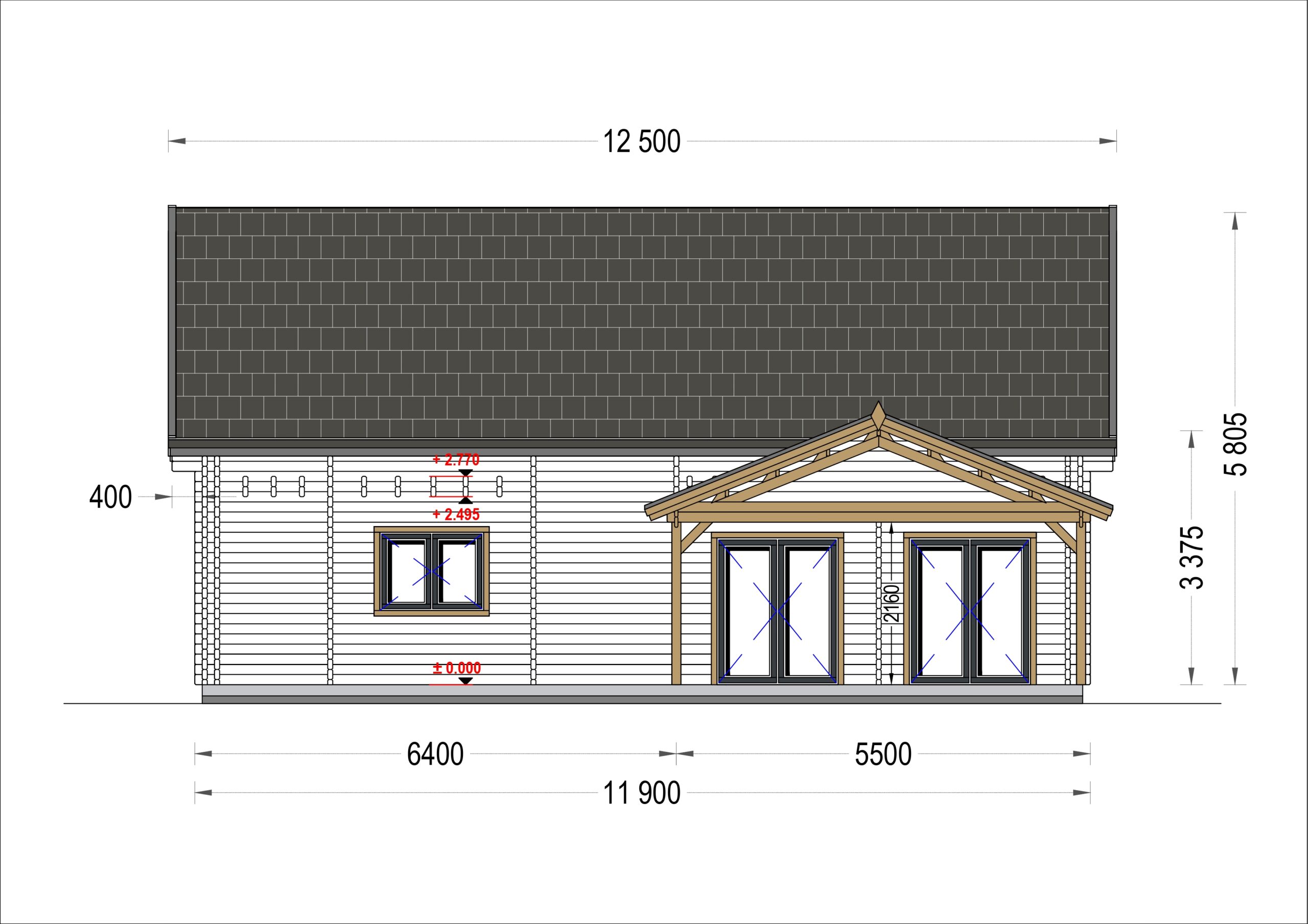 Blockbohlenhaus VERENA (44 + 44 mm), 127 m²