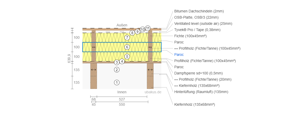 Erhalten Sie ein Dach, das Beständigkeit verspricht! Unsere verstärkte Dachkonstruktion setzt auf robuste Giebel und Dachsparren (45 mm x 135 mm oder 45 mm x 270 mm), um eine dauerhafte Stabilität zu gewährleisten und Ihr Dach vor möglichen Verformungen zu schützen.