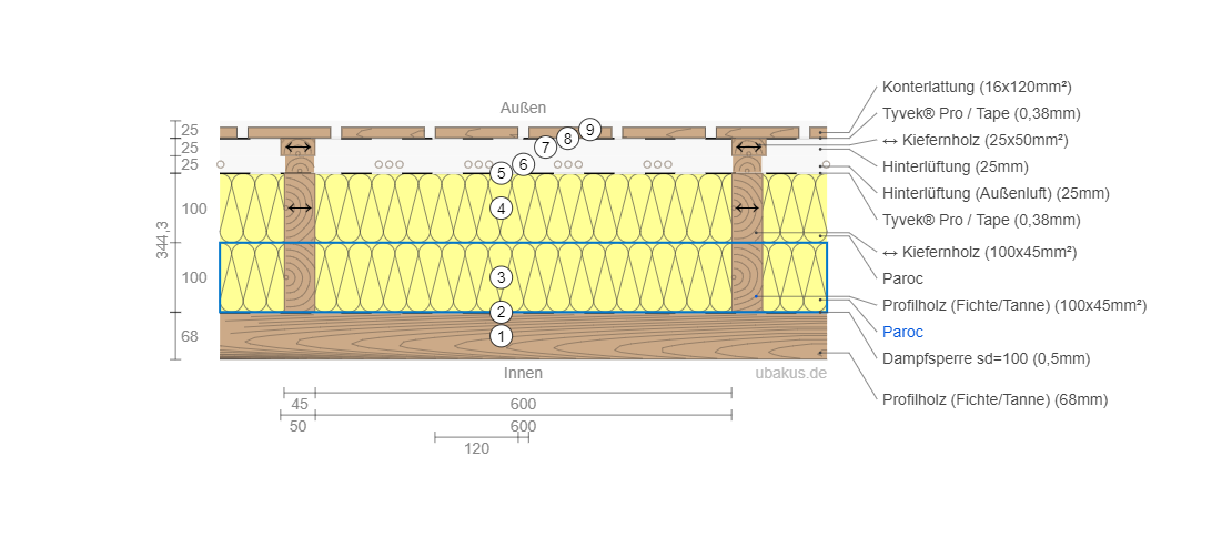 Dieses Holzfertighaus bietet eine herausragende Wohnqualität durch seine hochwertige Wärmedämmung mit Mineral oder Steinwolle.
