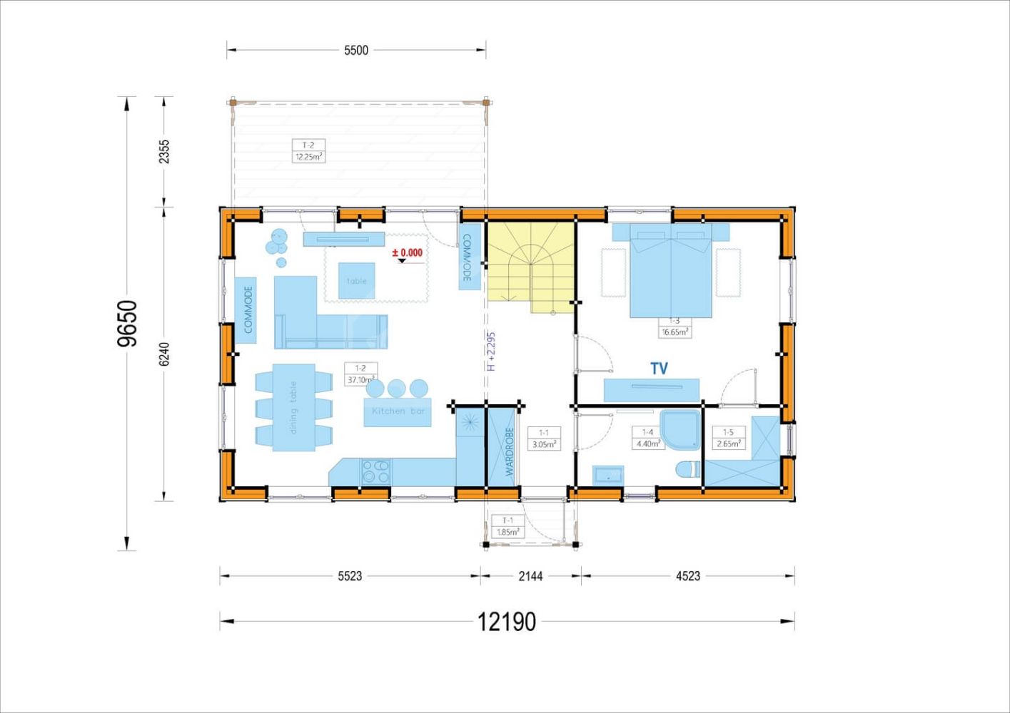 Dieses Fertighaus aus Holz bietet Wohnqualität auf höchstem Niveau dank seiner ausgezeichneten Wärmedämmung. Mit einer Dachisolierung von 300 mm, isolierten Böden (150 mm) und Wänden (200 mm) wird ein Höchstmaß an Wärme- und Wohnkomfort erreicht. Egal, ob Sie es als Ferienhaus oder als Hauptwohnsitz nutzen, Sie werden das ganze Jahr über in einer warmen und gemütlichen Umgebung leben können.
