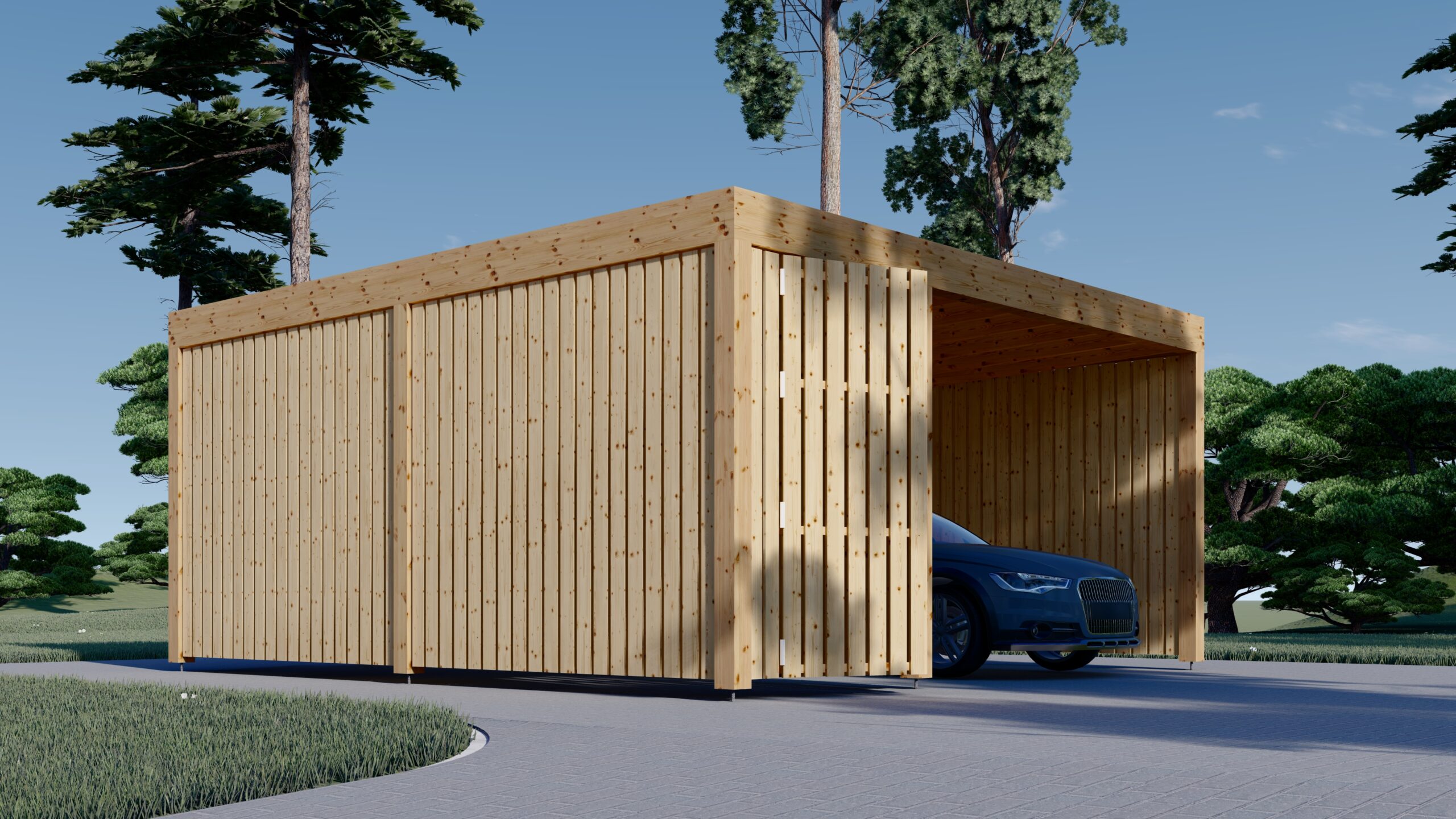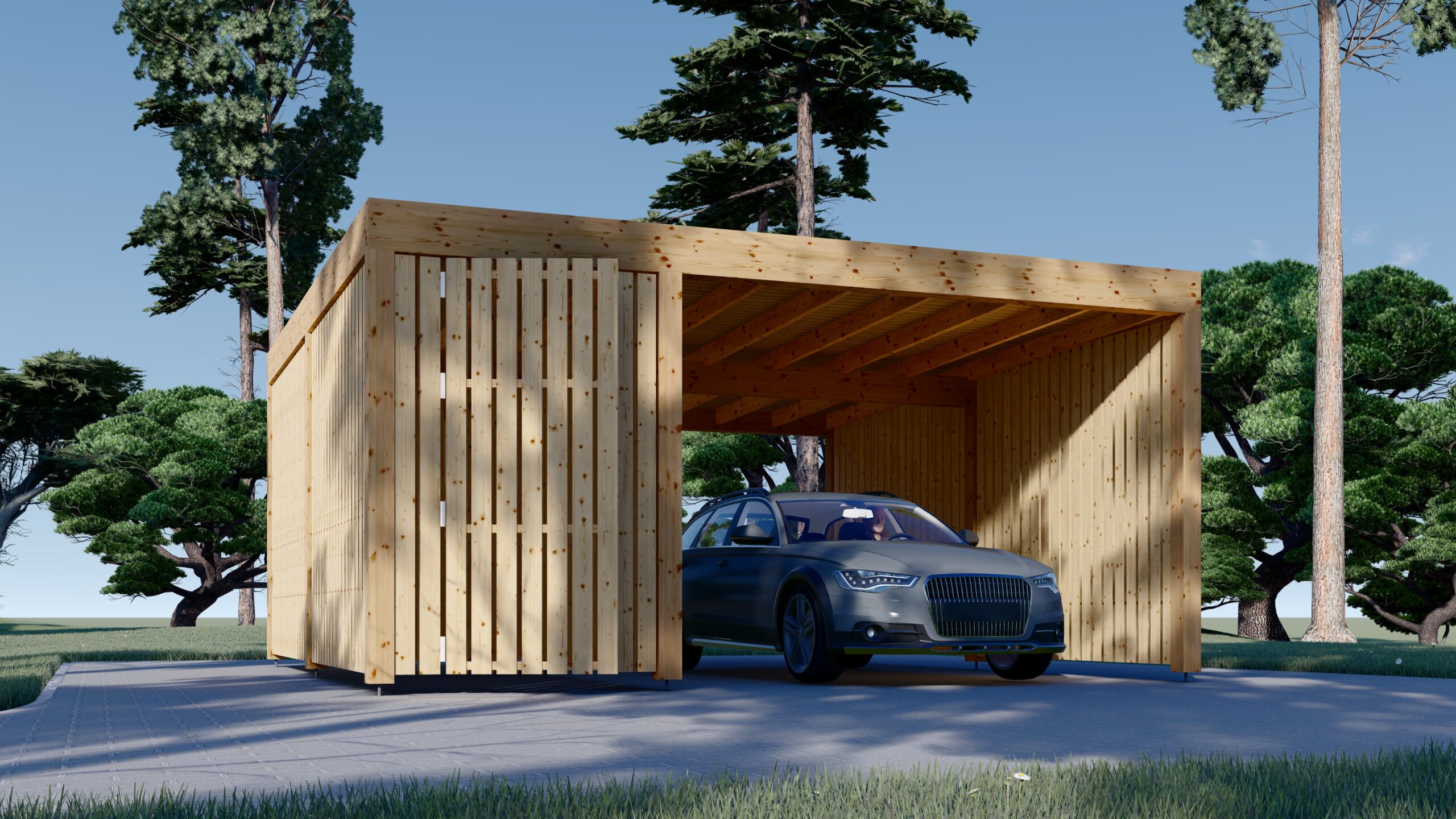 Dieses Carport-Modell verfügt über 2 Seitenwände, die aus einem Holzrahmen mit einer vertikalen Lamellenverkleidung besteht und einen hervorragenden Schutz für Ihr Fahrzeug bietet. Die Carport-Konstruktion kann durch zusätzliche Paneele aus unserem Zubehörbereich problemlos modifiziert werden, indem sie Seitenwände hinzufügen oder weglassen. Wählen Sie einfach die Anzahl der Holzpaneele, die Sie an den Seiten Ihres Carports anbringen möchten (2-3).