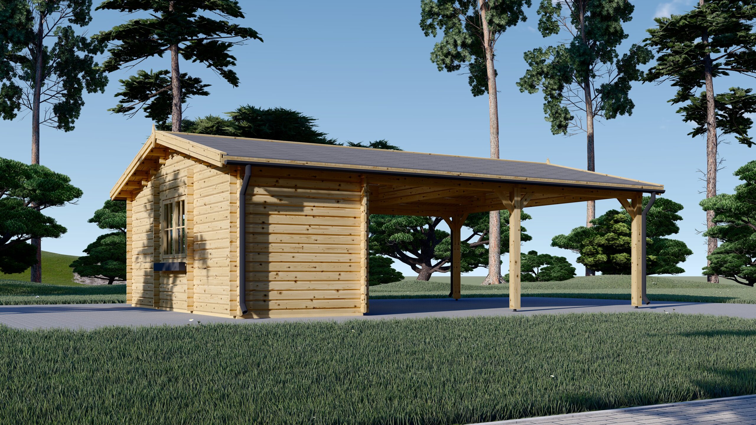 Carport aus Holz 4×5 m mit Schuppen und Seitenwand (44mm), 4×2.5m