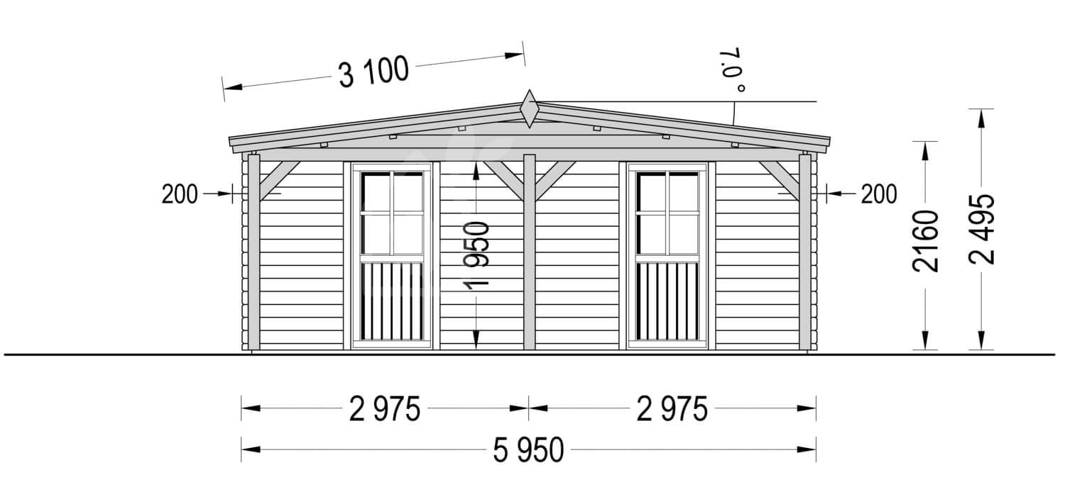 Blockbohlenhaus FELDKIRCH (44 mm), 56 m²
