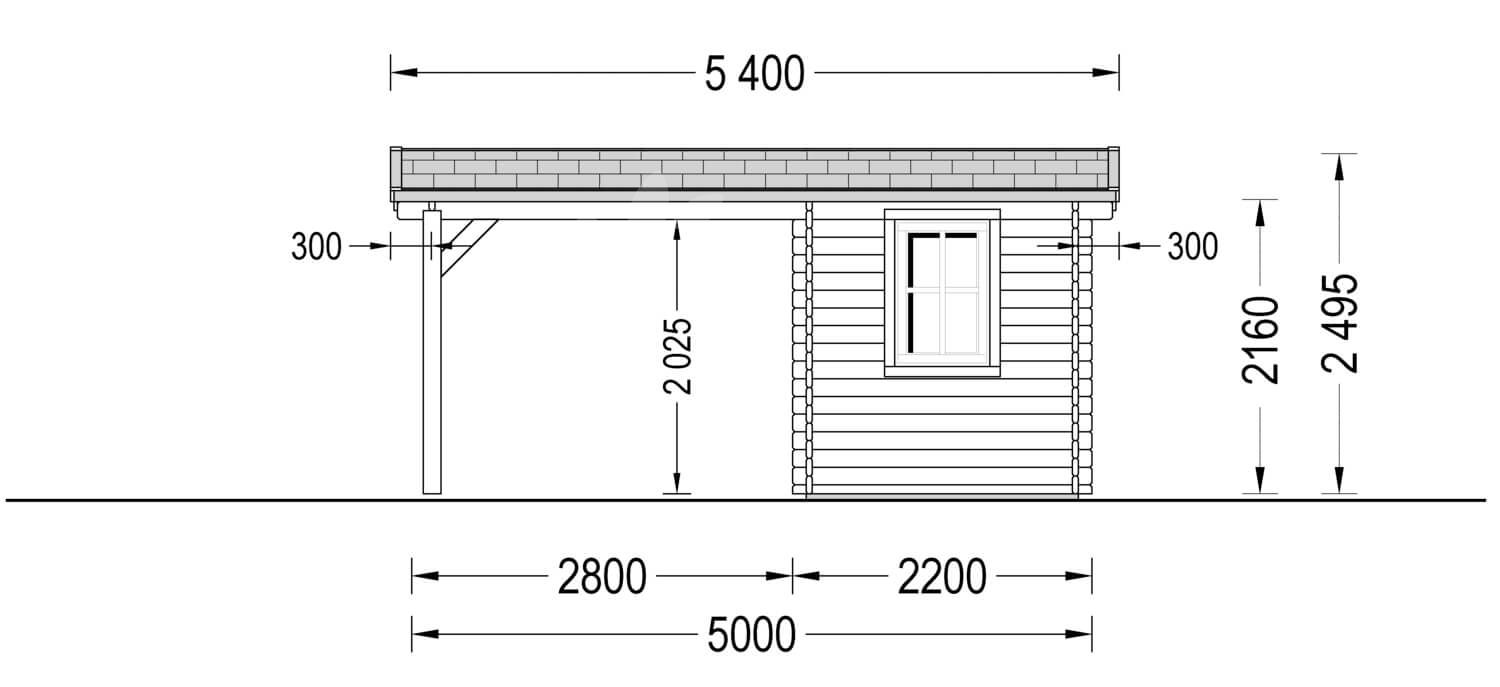 Carport aus Holz für 1 Auto mit Schuppen und Seitenwand LUNA F PLUS, 4.9×5.6 m