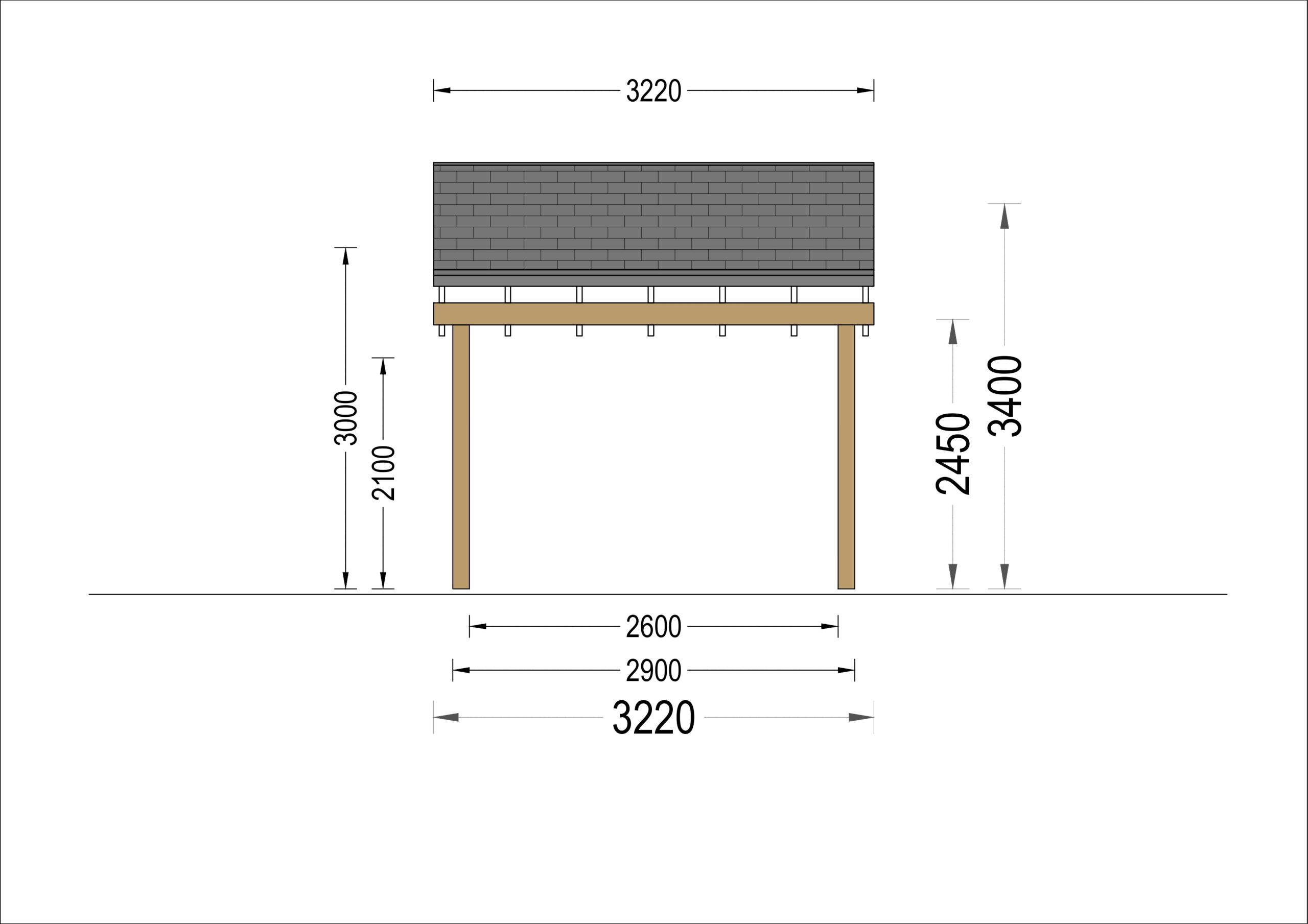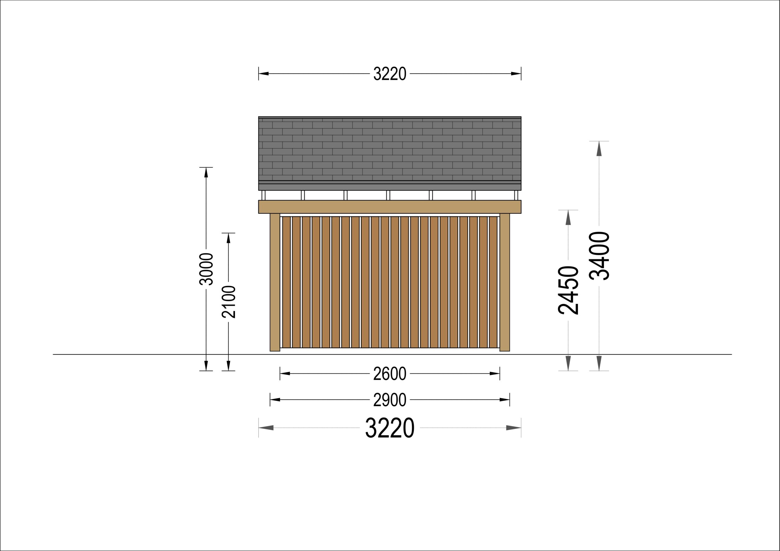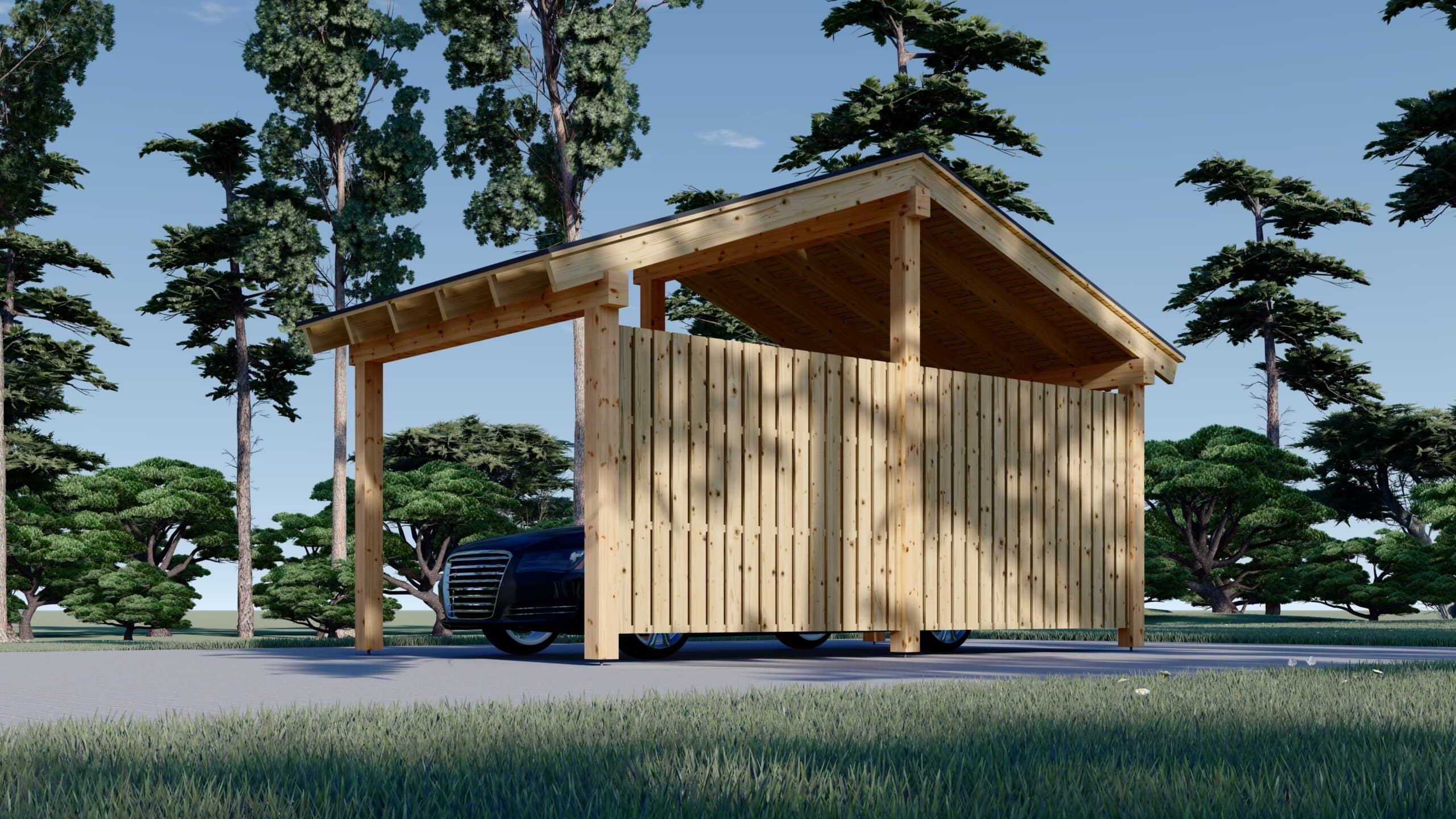 Carport aus Holz mit L-förmiger Wand LISA, 3.2×6 m