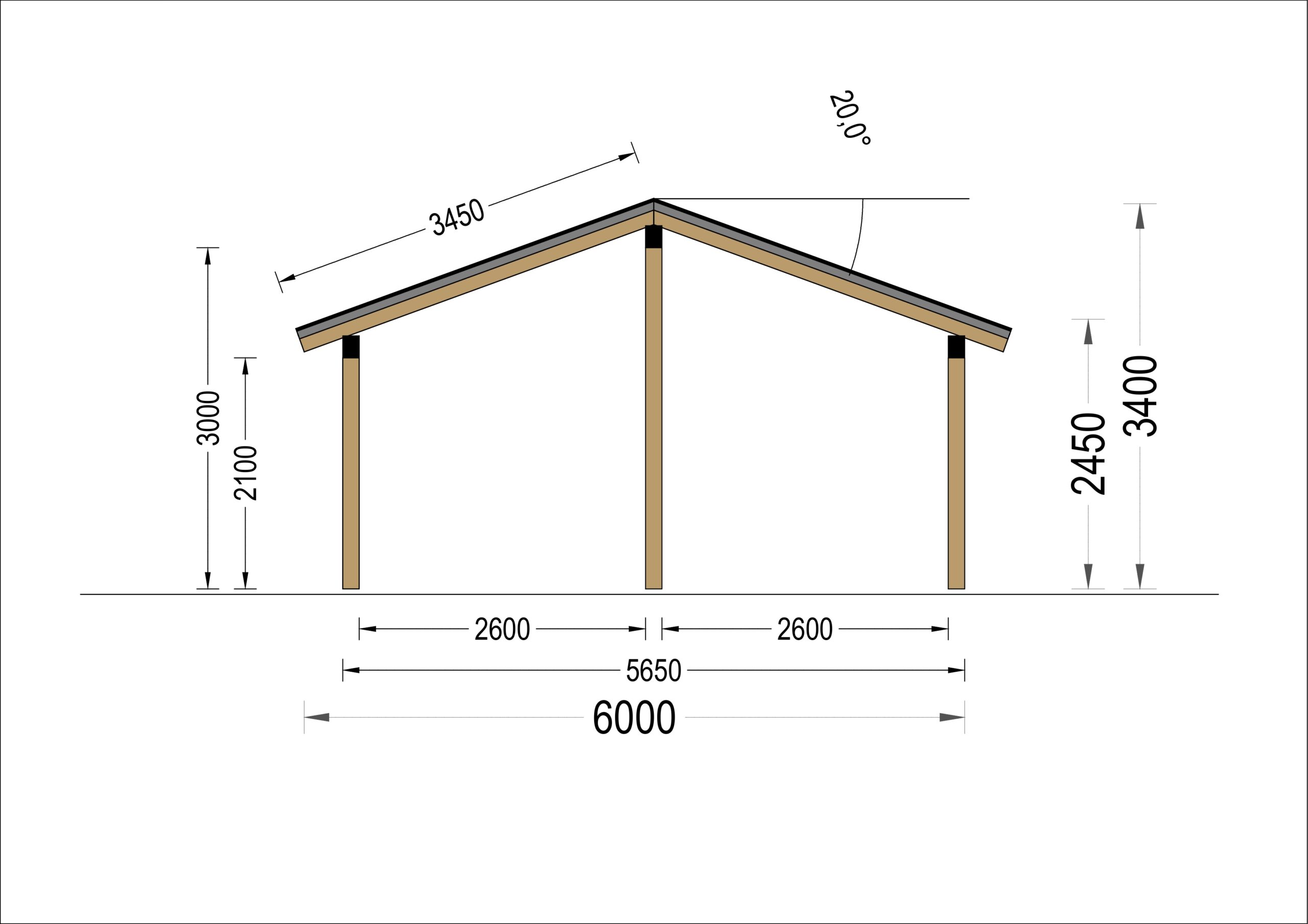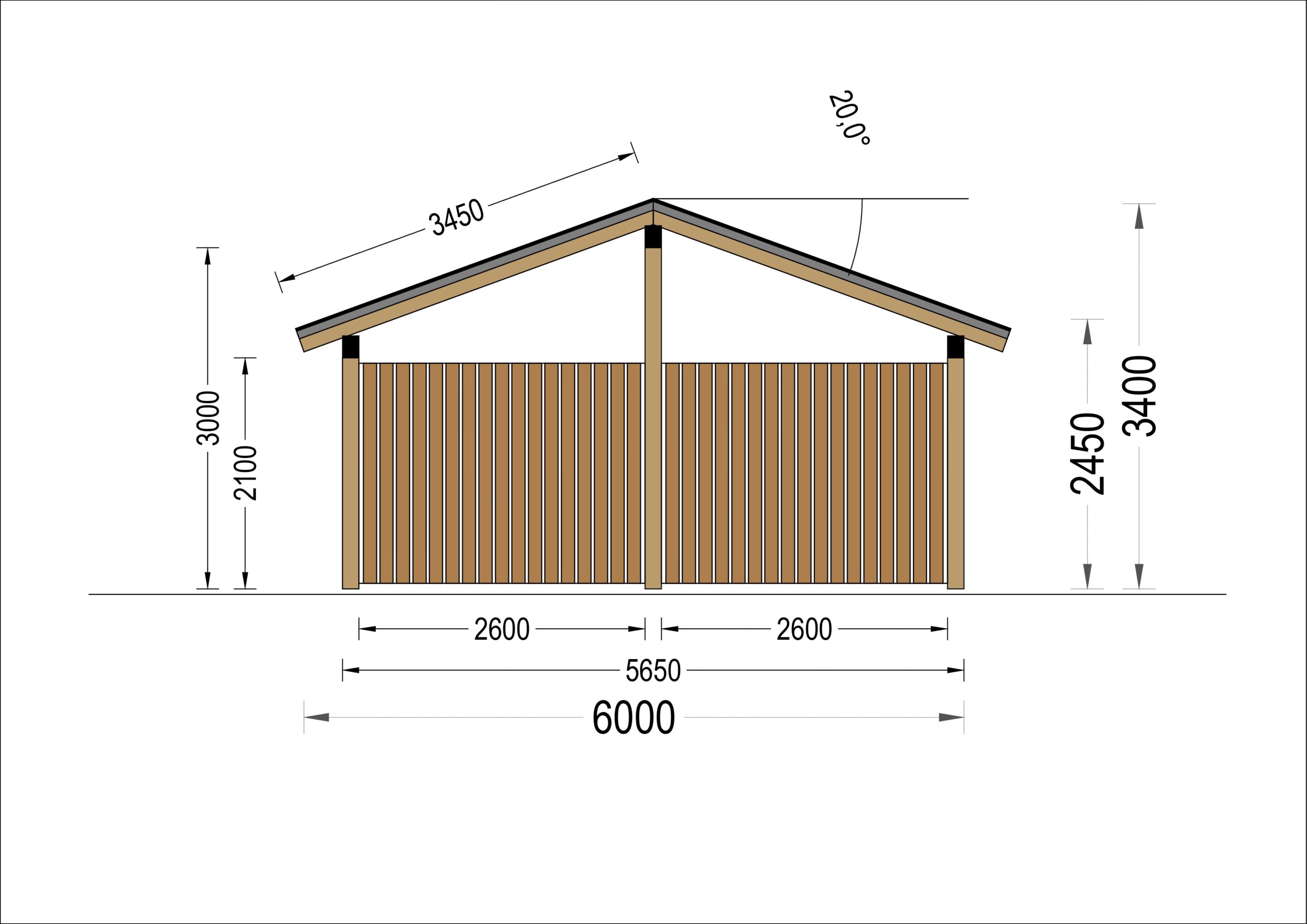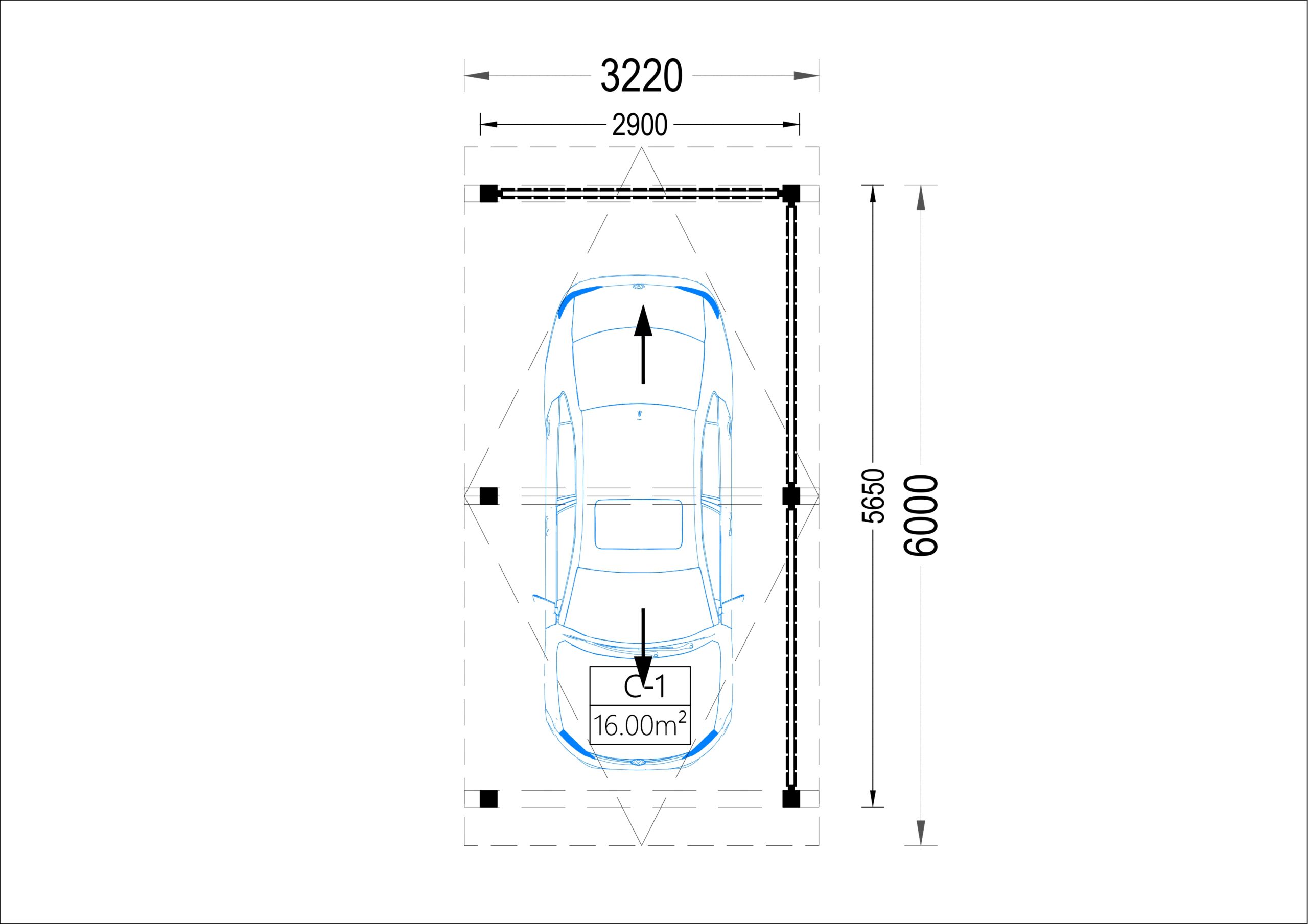 Carport aus Holz mit L-förmiger Wand LISA, 3.2×6 m