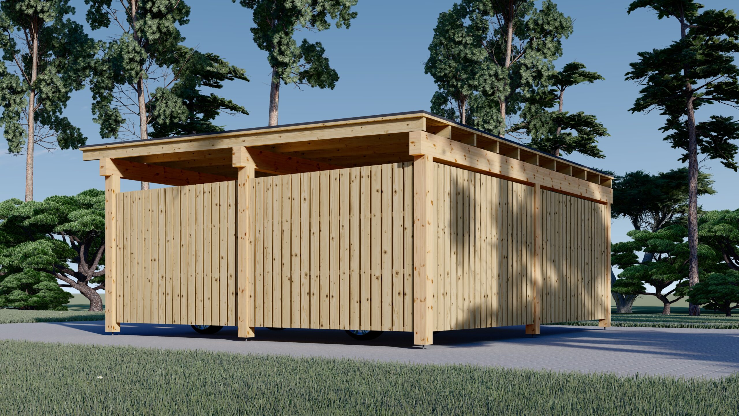 Holzgarage mit Flachdach (34mm + Holzverschalung), 5x6m, 30m²