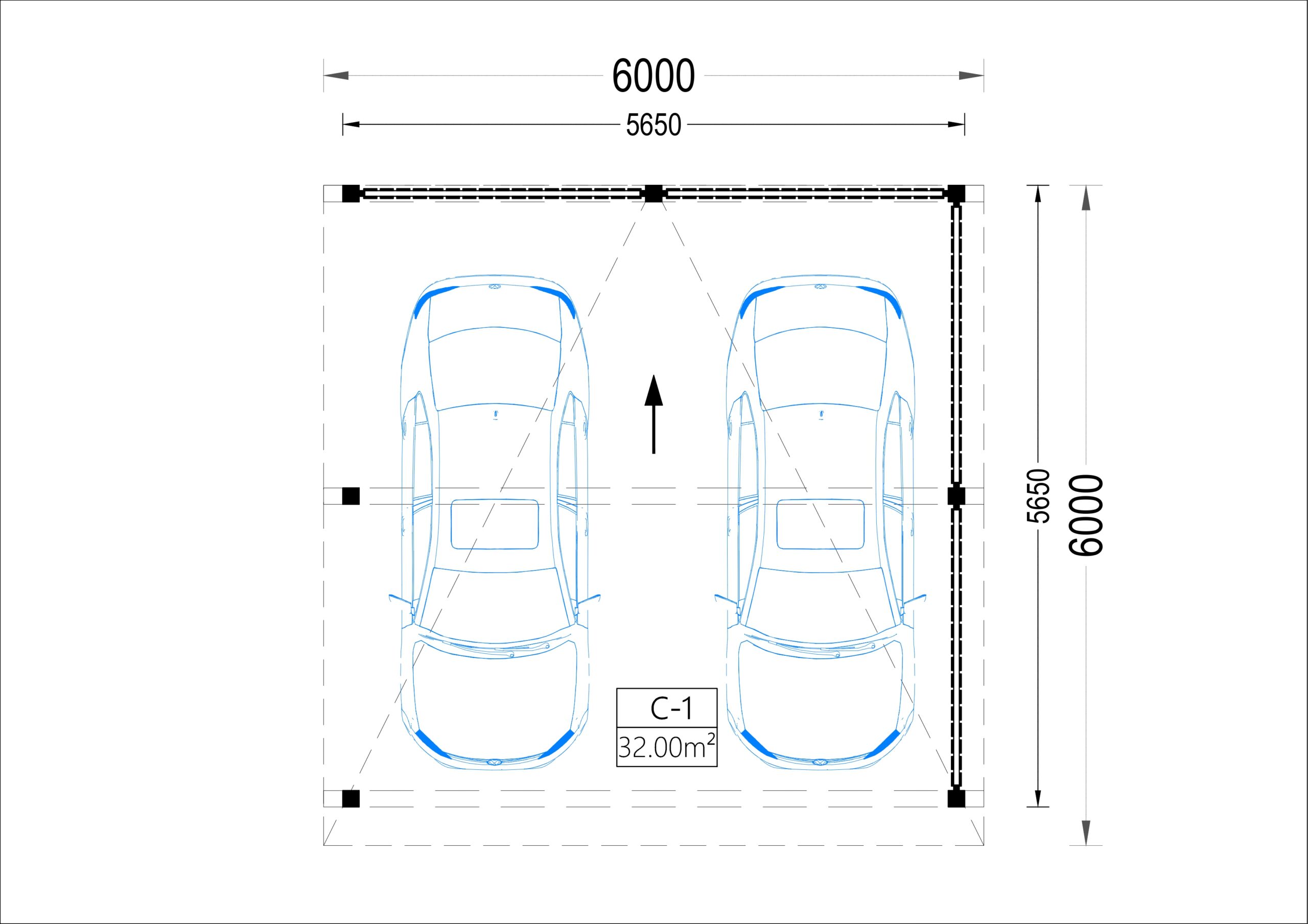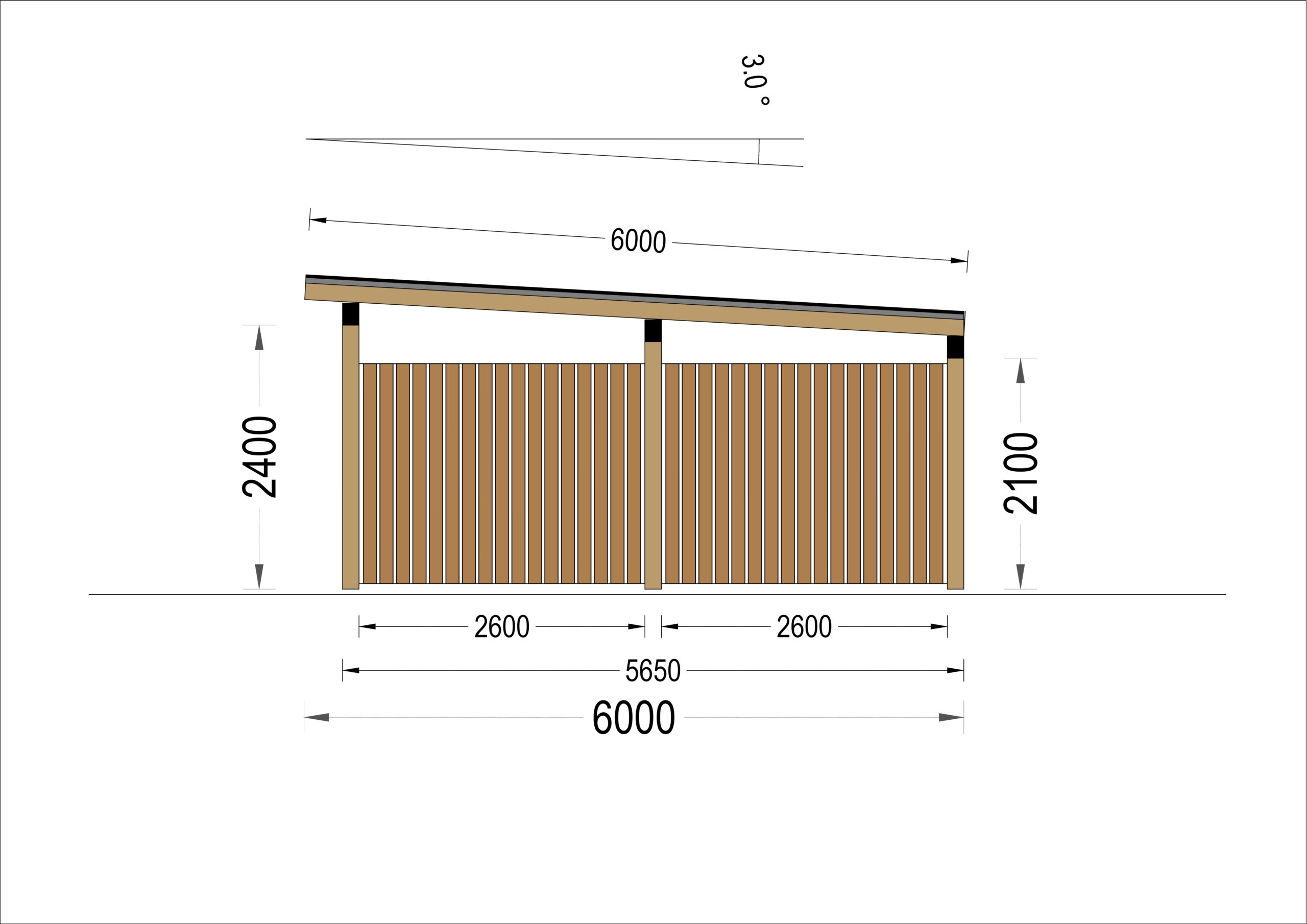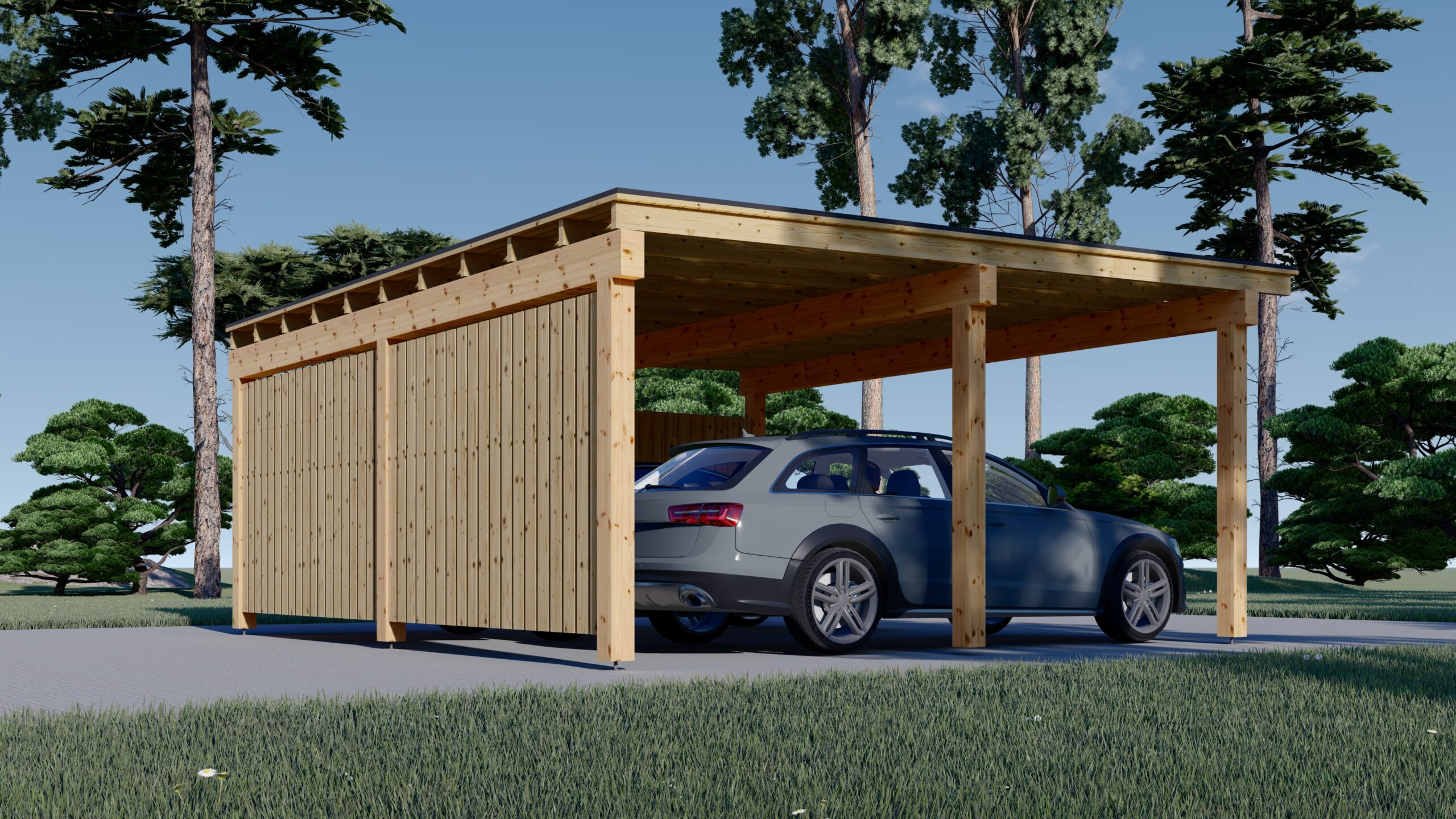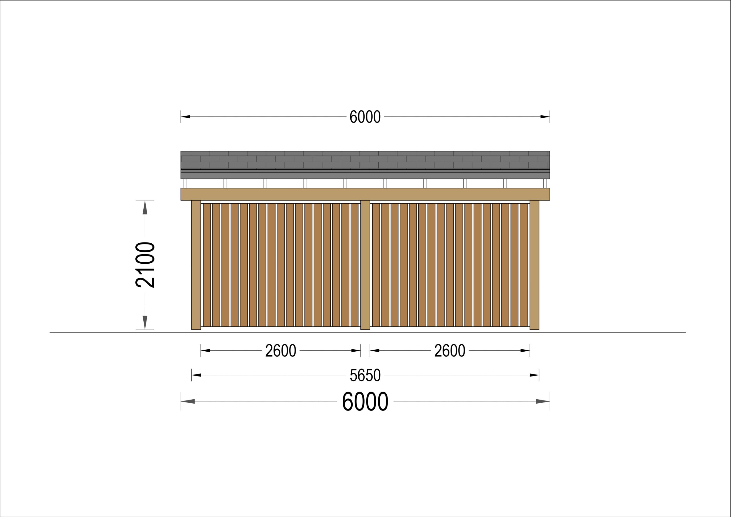 Carport Luna Duo für 2 Autos mit L-förmiger Wand F, 6×6 m